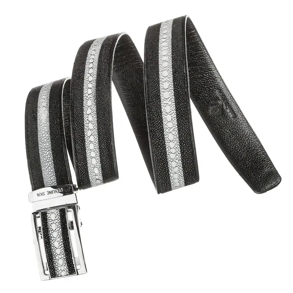 Ремінь чоловічий автомат STINGRAY LEATHER 18534 із натуральної шкіри морського ската Чорний