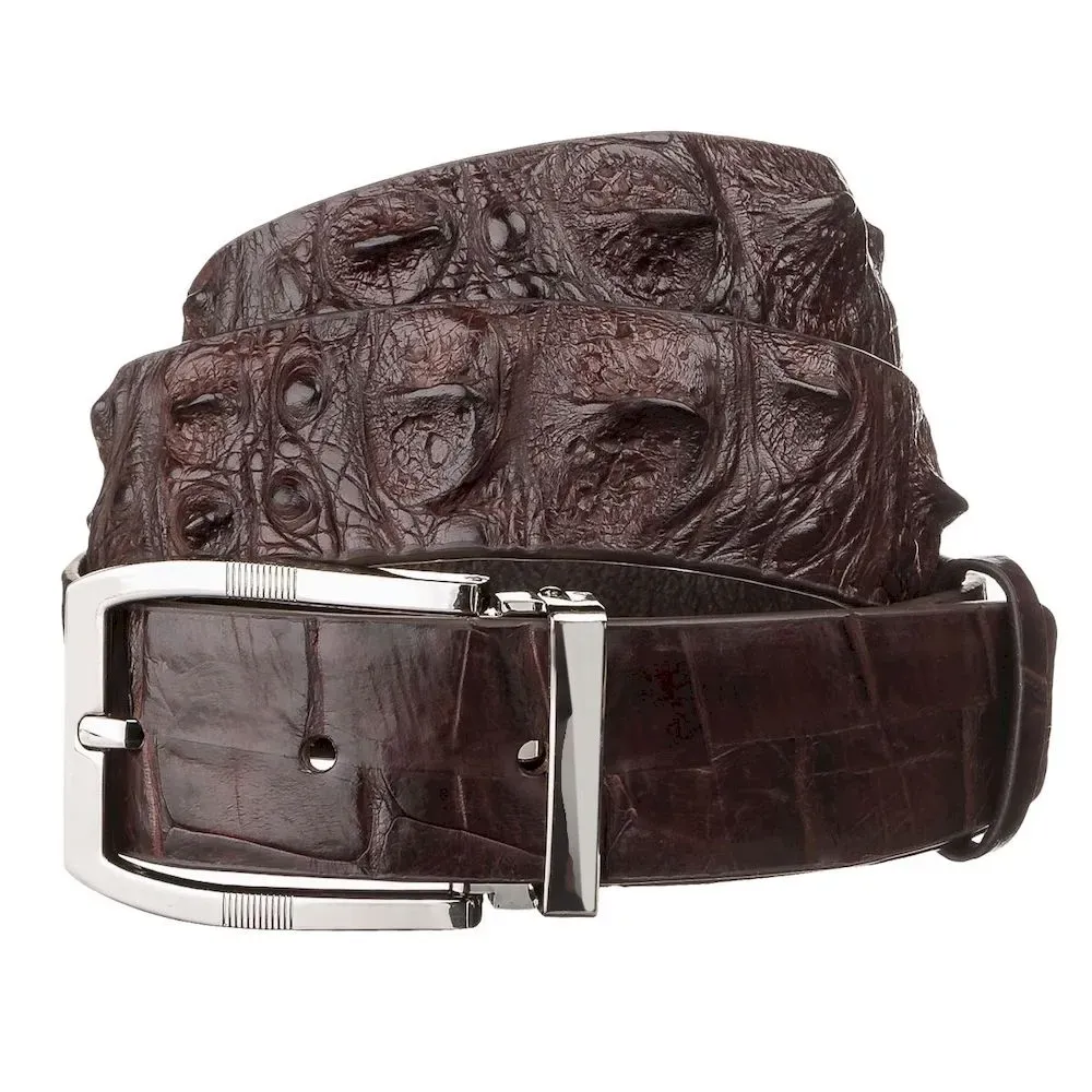 Чоловічий ремень CROCODILE LEATHER 18178 з натуральної шкіри крокодила Коричневий