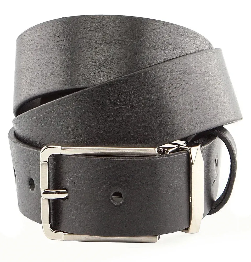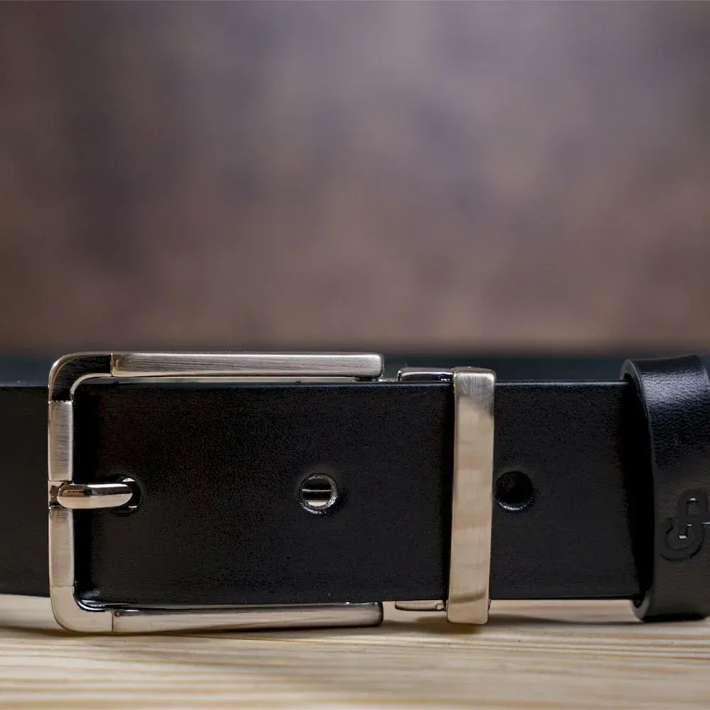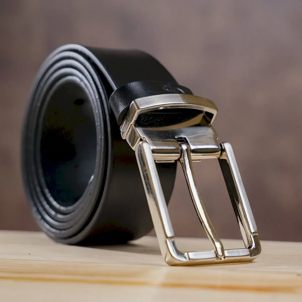Первоклассный мужской ремень, черного цвета, изготовлен из натуральной кожи высокого качества. Удобный практичный аксессуар, с возможностью регулировки длины, станет замечательным помощником для стильных современных мужчин.