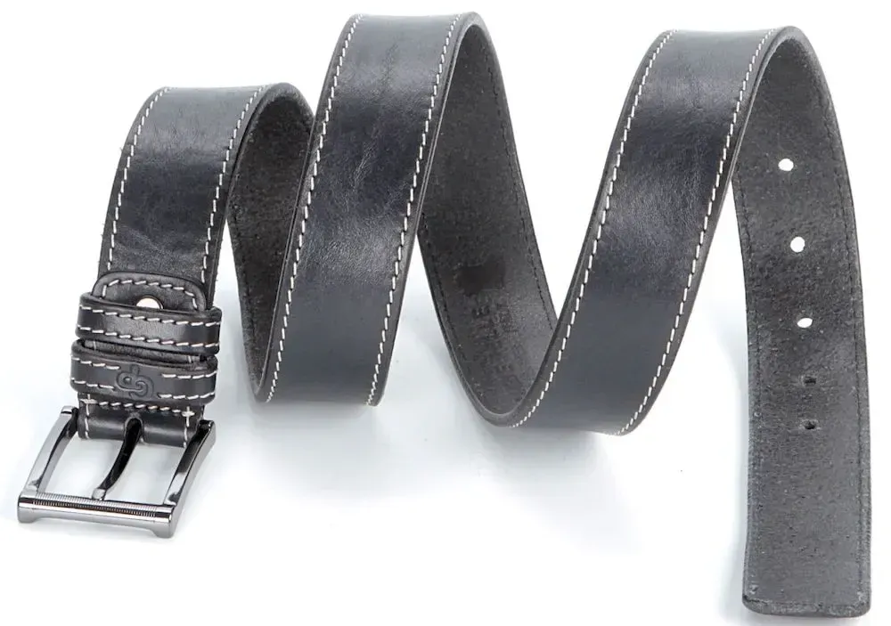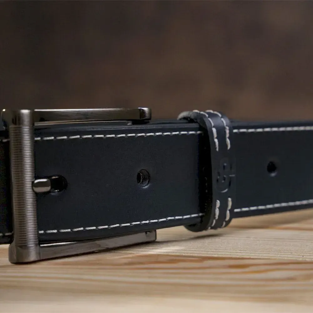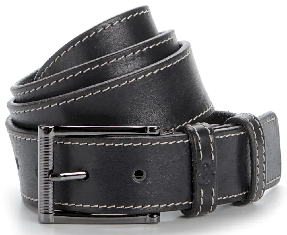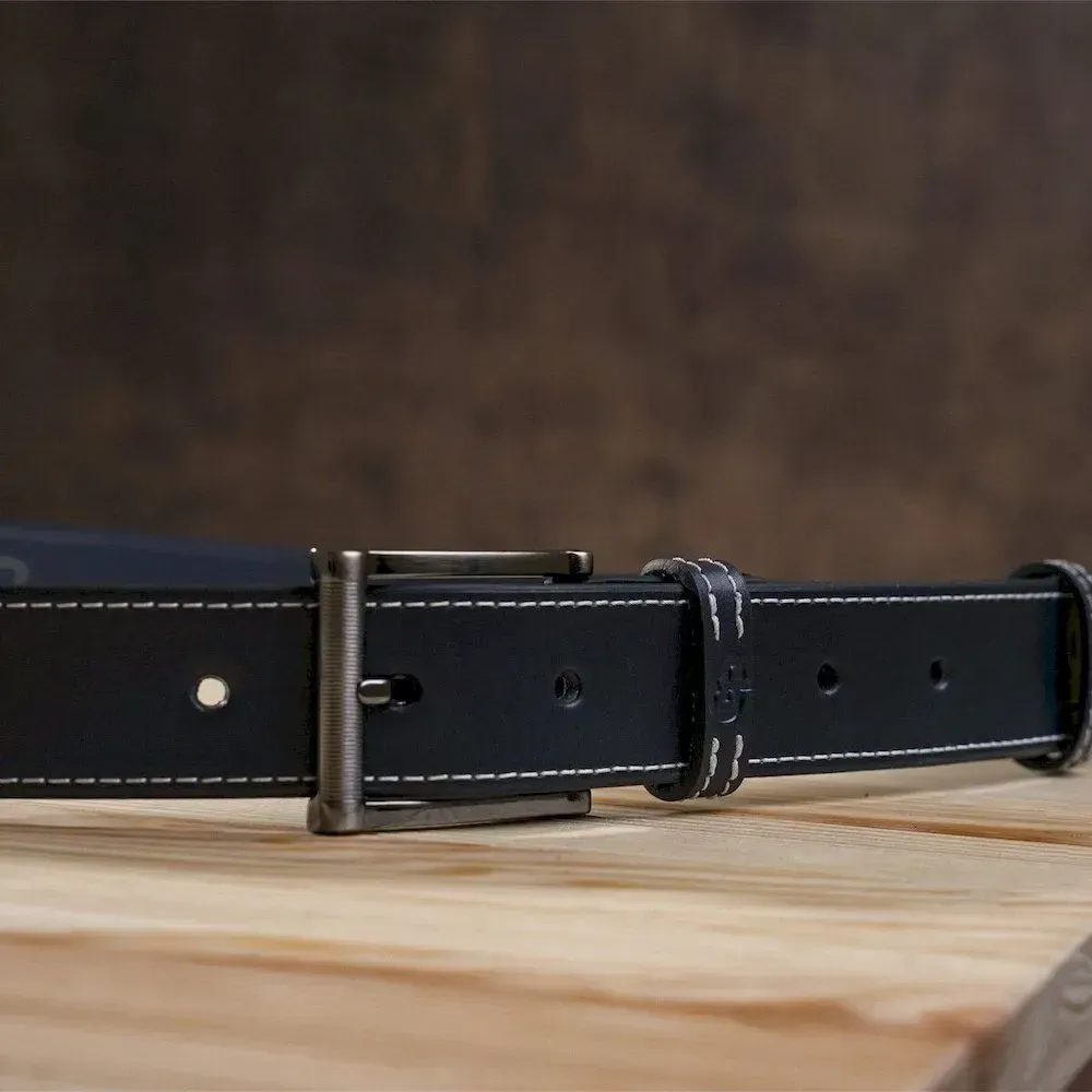 Брючный ремень из натуральной высококачественной кожи черного цвета, который стильно дополняет белая строчка по краям. Этот элемент дизайна делает изделие более современным, чем обычный классический ремень. Ремень упакован в красивую коробку и станет замечательным подарком для мужчины. Порадуйте себя или кого-либо презентабельной и практичной вещью!