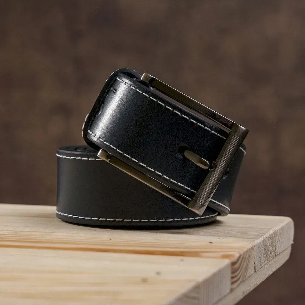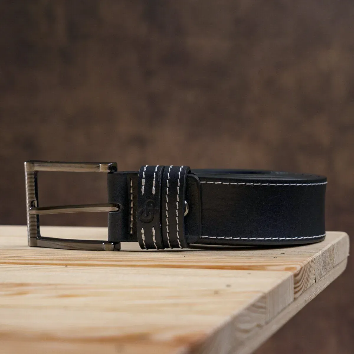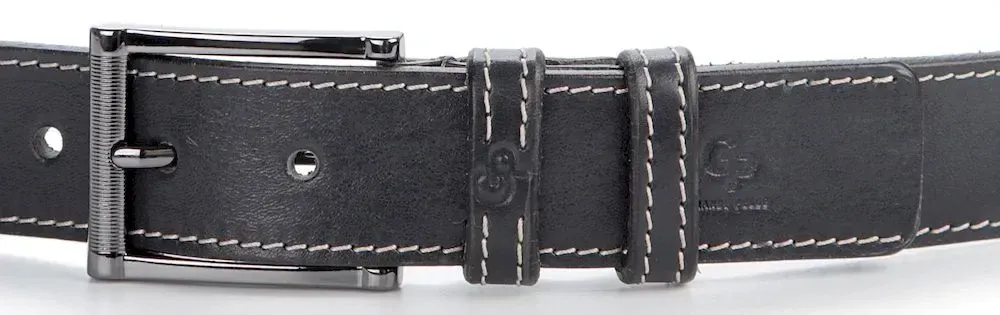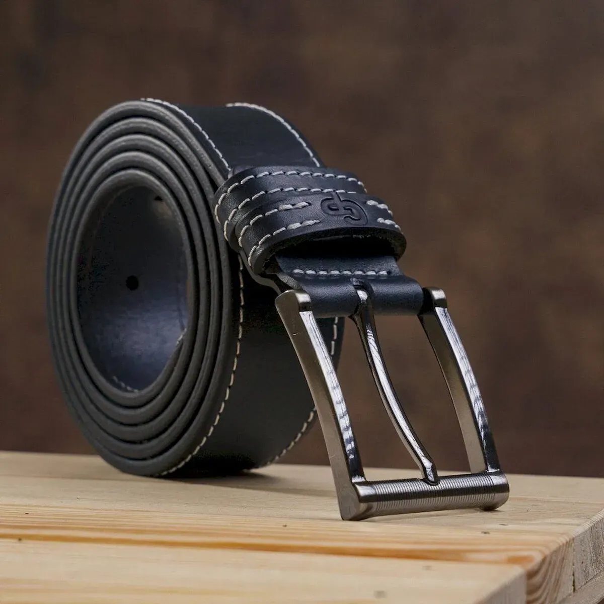 Брючный ремень из натуральной высококачественной кожи черного цвета, который стильно дополняет белая строчка по краям. Этот элемент дизайна делает изделие более современным, чем обычный классический ремень. Ремень упакован в красивую коробку и станет замечательным подарком для мужчины. Порадуйте себя или кого-либо презентабельной и практичной вещью!