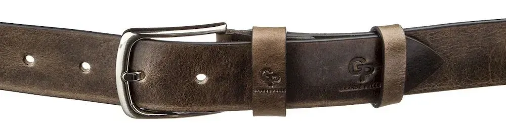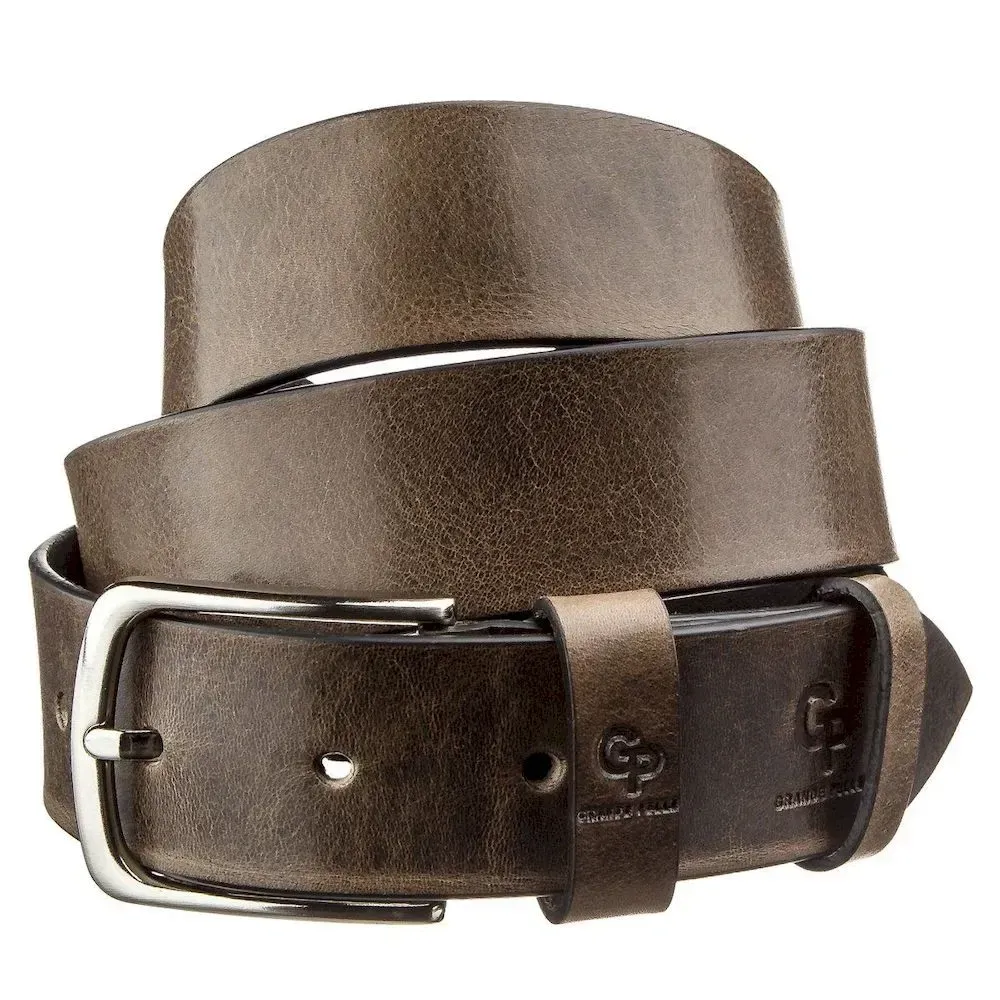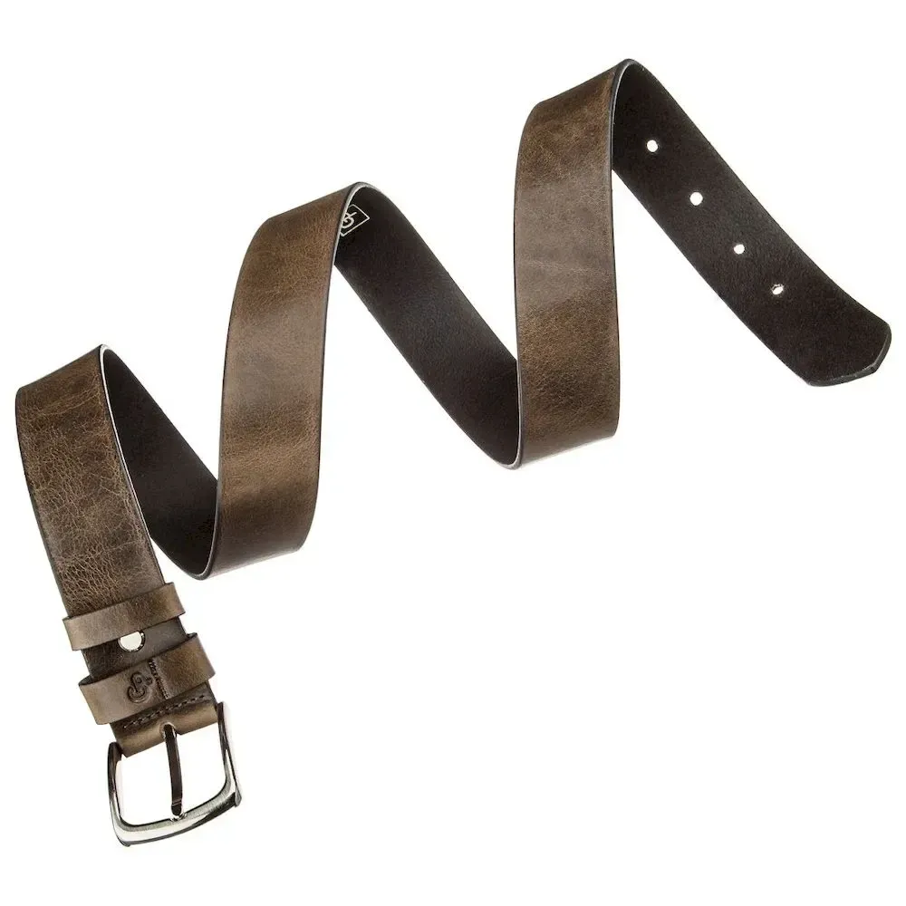 Чоловічий ремень з круглою сріблястою пряжкою Grande Pelle 11273 Сіро-коричневий