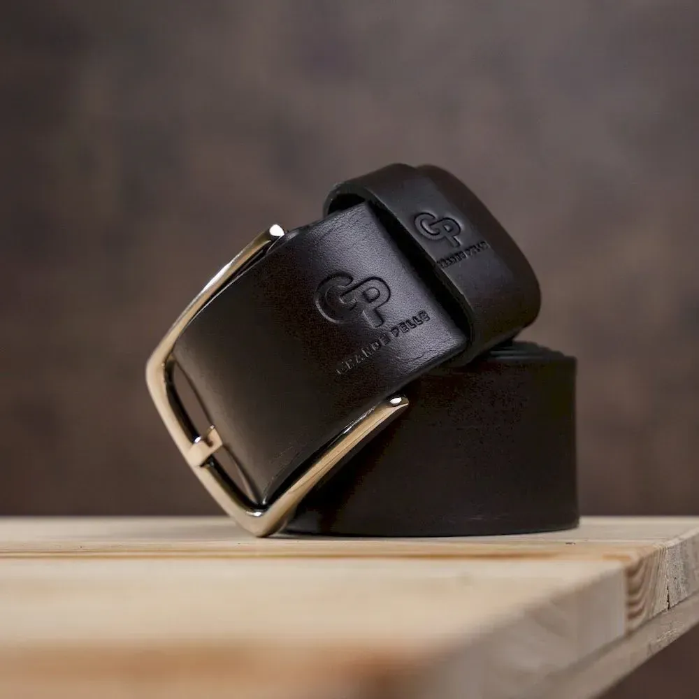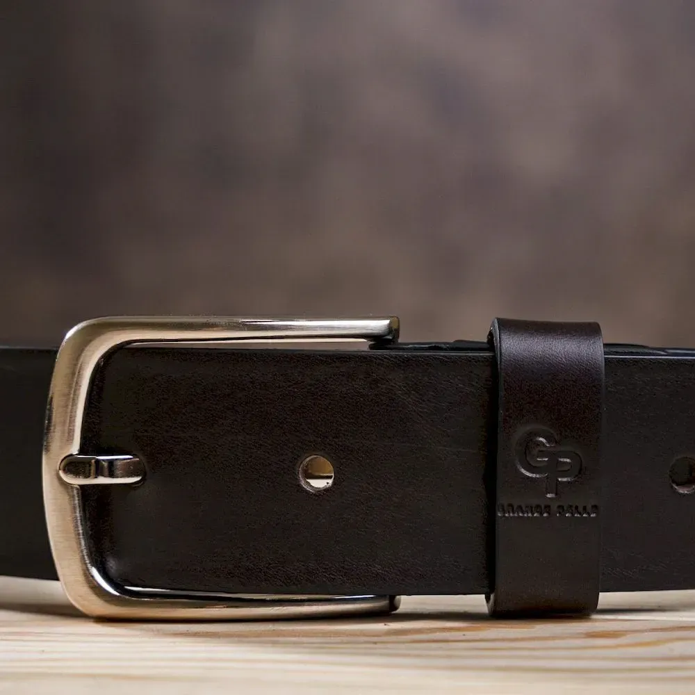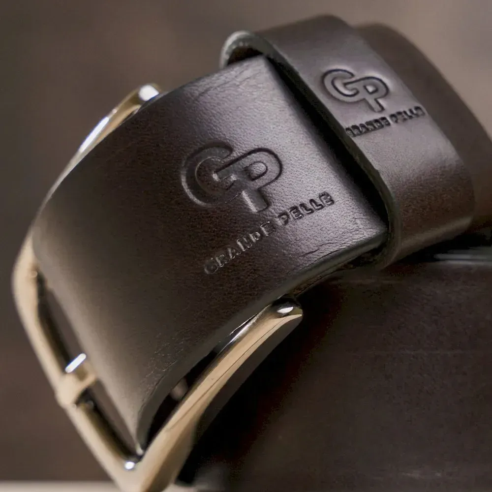 Ремінь чоловічий із сріблястою пряжкою GRANDE PELLE 11266 Коричневий