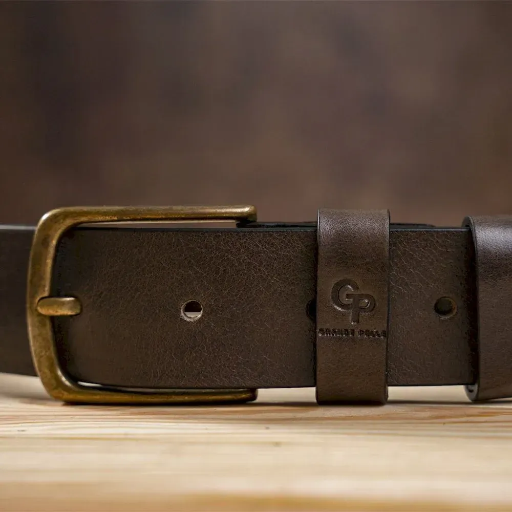 Діловий чоловічий джинсовий ремінь із натуральної шкіри. Ремінь виконаний із цілісного полотна та доповнений міцною пряжкою найвищої якості кольору латуні. Модель спокійного класичного кольору та витриманого дизайну. Якісний ремінь стане незамінною річчю для будь-якого чоловіка. Колір та дизайн ременя не прив'язує вас до особливого підбору гардеробу та взуття. У комплекті до ремінця йде картонна упаковка, що робить аксесуар ще привабливішим для подарунка.