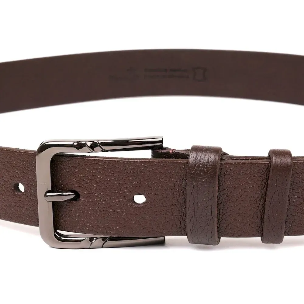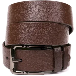 Дана модель коричневого кольору ідеально підкреслить ваш смак та почуття стилю. Використана в ремені фурнітура сприяє високому терміну носіння ременя. Застібка виконана із твердого металу сріблястого кольору. Ремінь має тиснену поверхню. Буде до душі навіть найвибагливішого клієнта. Чудово підійде на подарунок. Аксесуар упакований у фірмову коробку.
