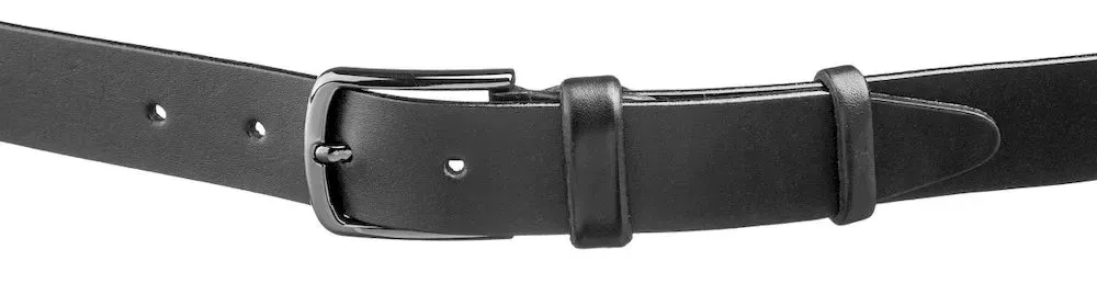 Ремінь має гладку поверхню чорного кольору без написів та тиснень. Модель має класичний та простий дизайн з урахуванням усіх модних тенденцій. Завдяки відточені технології виробництва ремінь довгий час залишається в ідеальному стані. Маючи чорний колір аксесуар ідеально підійде для штанів та джинсів. Фурнітура виконана з якісного металу прямокутної форми із закругленими краями кольору темного срібла.