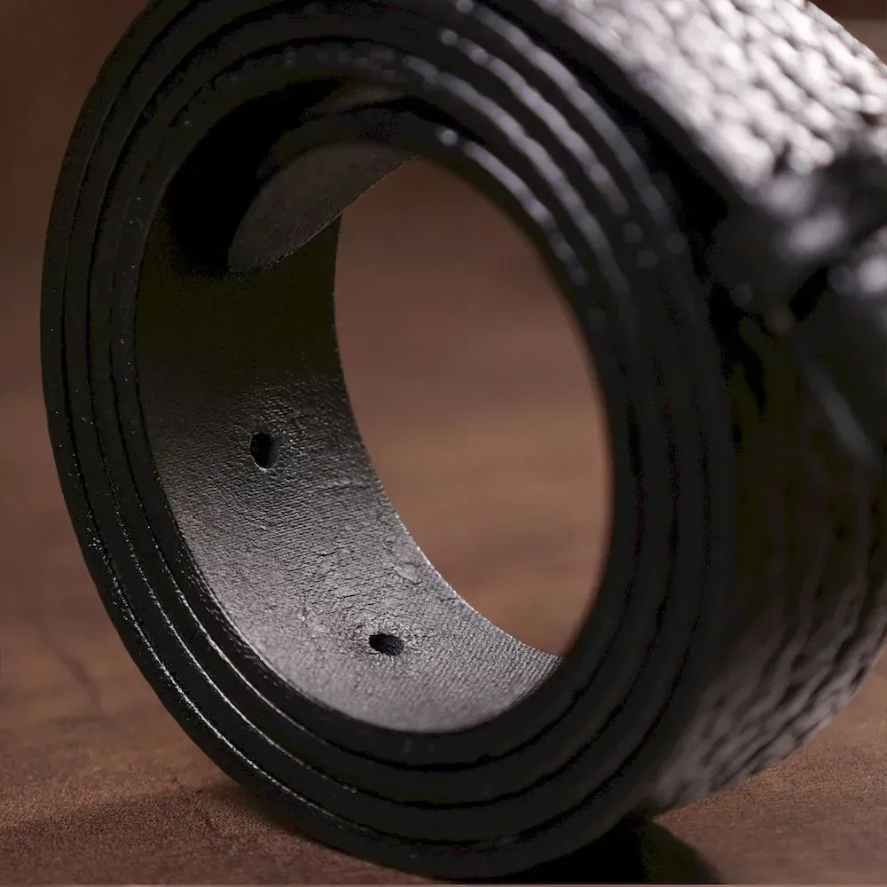 Ремінь це незамінна річ у вашому гардеробі. Аксесуар має тиснену поверхню, що з легкістю виділить вас з натовпу та підкреслить ваш статус та відмінне почуття стилю. Модель не залишить байдужими любителів класики та практичності. Відмінно підійде як для кожного дня, так і для важливих подій. Має класичну застібку, виконану з якісного металу, кольору темного срібла з шаховим малюнком на кінці. Модель буде чудовим подарунком, а фірмова подарункова упаковка буде чудовим бонусом.