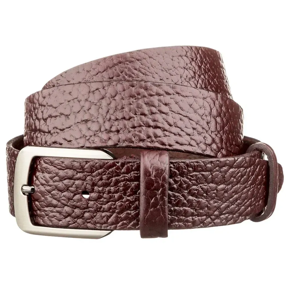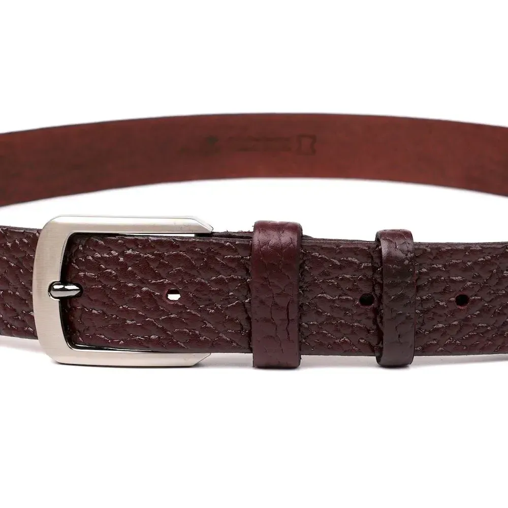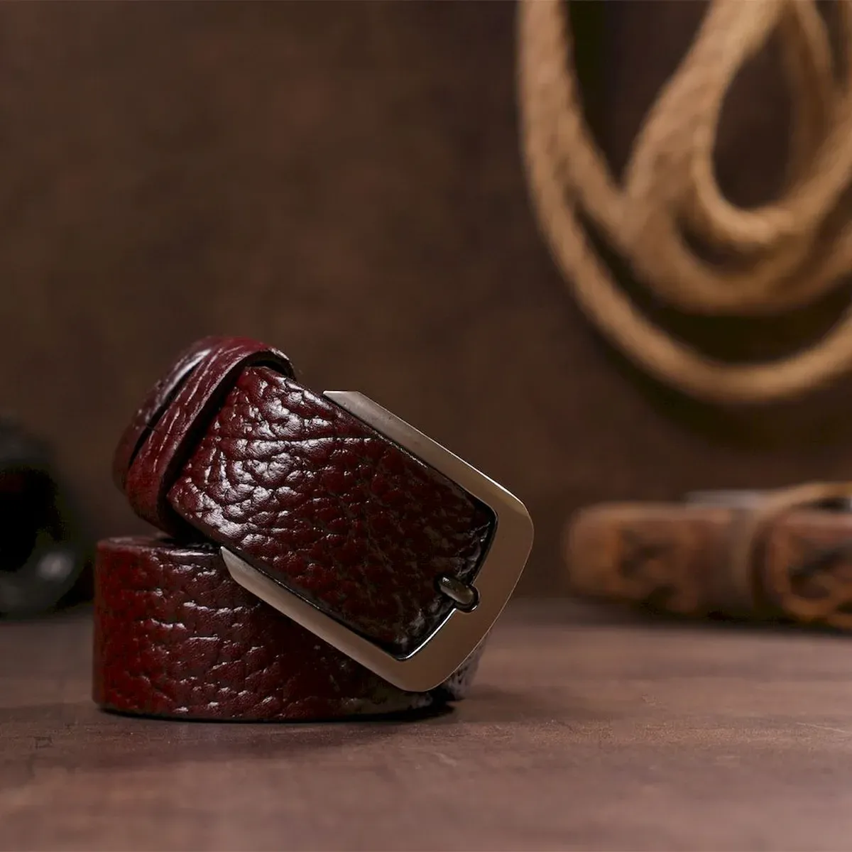 Шкіряний ремінь із тисненою поверхнею коричневого кольору. Модель має металеву класичну фурнітуру із закругленими краями. Аксесуар виконаний з натуральної шкіри високої якості, що сприяє збільшенню терміну служби виробу. Виріб чудово підкреслить вашу індивідуальність і виділить вас із натовпу. Можна носити як кожен день, так і важливі події. Завдяки своєму спрощеному дизайну аксесуар дуже практичний і універсальний. Ідеальний варіант подарунка. Приємним бонусом буде фірмова упаковка.