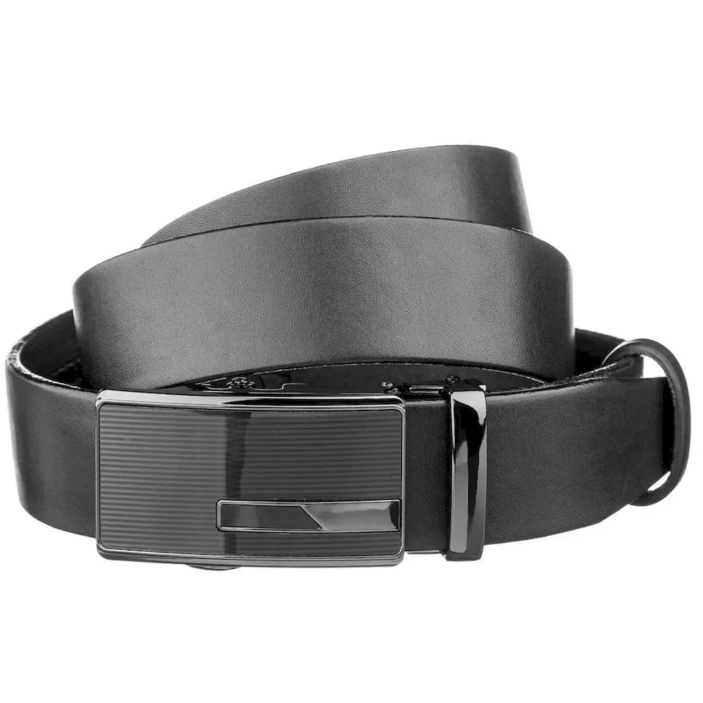 Вишуканий чоловічий ремінь виготовлений із високоякісної натуральної шкіри. Модель має автоматичну застібку, виготовлену з якісного металу кольору темного срібла. Розкішний зовнішній вигляд йому надає чорний колір та строгий, стриманий дизайн. Аксесуар виглядає стримано та відмінно підійде для тих, хто цінує добротність, практичність та якість. Відмінний вибір для стильних та стриманих чоловіків. У комплекті йде фірмова подарункова упаковка.