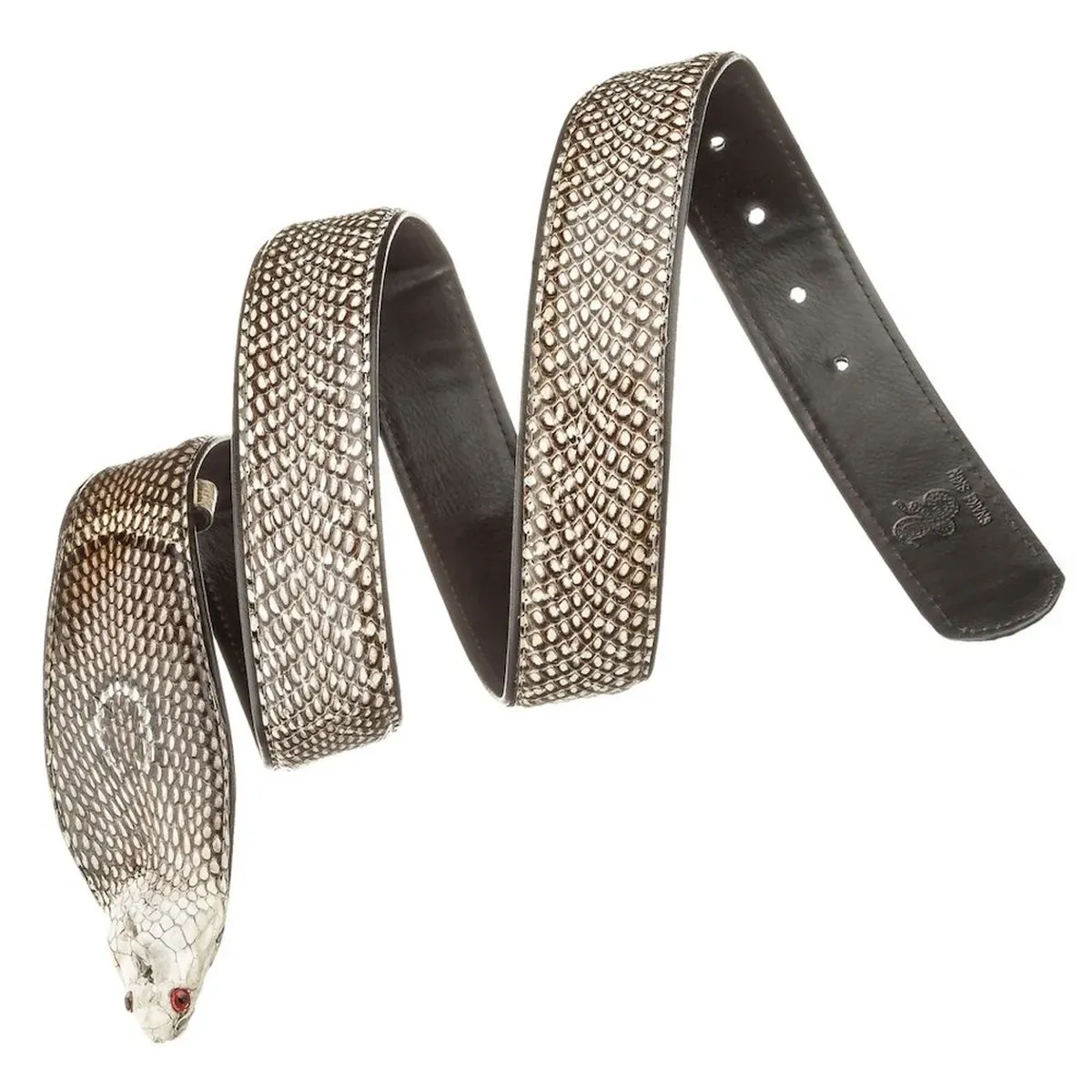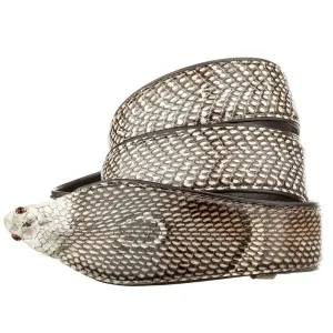 Розкішний ремінь із натуральної шкіри кобри. Модель має високу якість і дуже довго носиться. Аксесуар підкреслить ваше почуття стилю та відмінний смак. Отвори в ремені відсутні і можуть бути пробиті вами самостійно під розмір. Родзинкою моделі є голова змії, що надає унікальності даному ременю. Буде чудовим подарунком, як для себе, так і для близької людини.