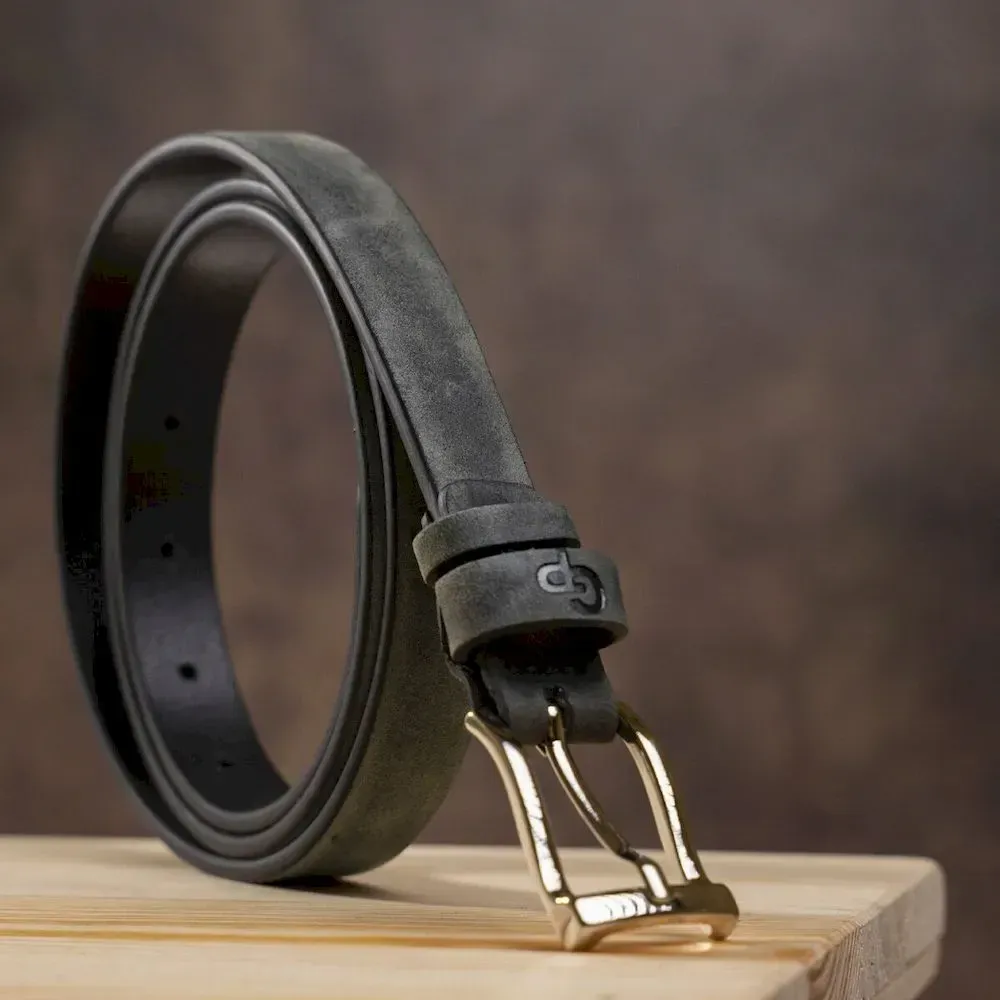 Гарний жіночий ремінь із високоякісної італійської шкіри. Вузький ремінь можна носити, як з брюками, так і з сукнею, блузкою або тунікою. Пряжка виконана з якісної фурнітури, дуже акуратна та стильна. Колір пряжки: жовте срібло. Тиснення логотипу бренду додає виробу стилю, а також служить запорукою якості та оригінальності продукції.