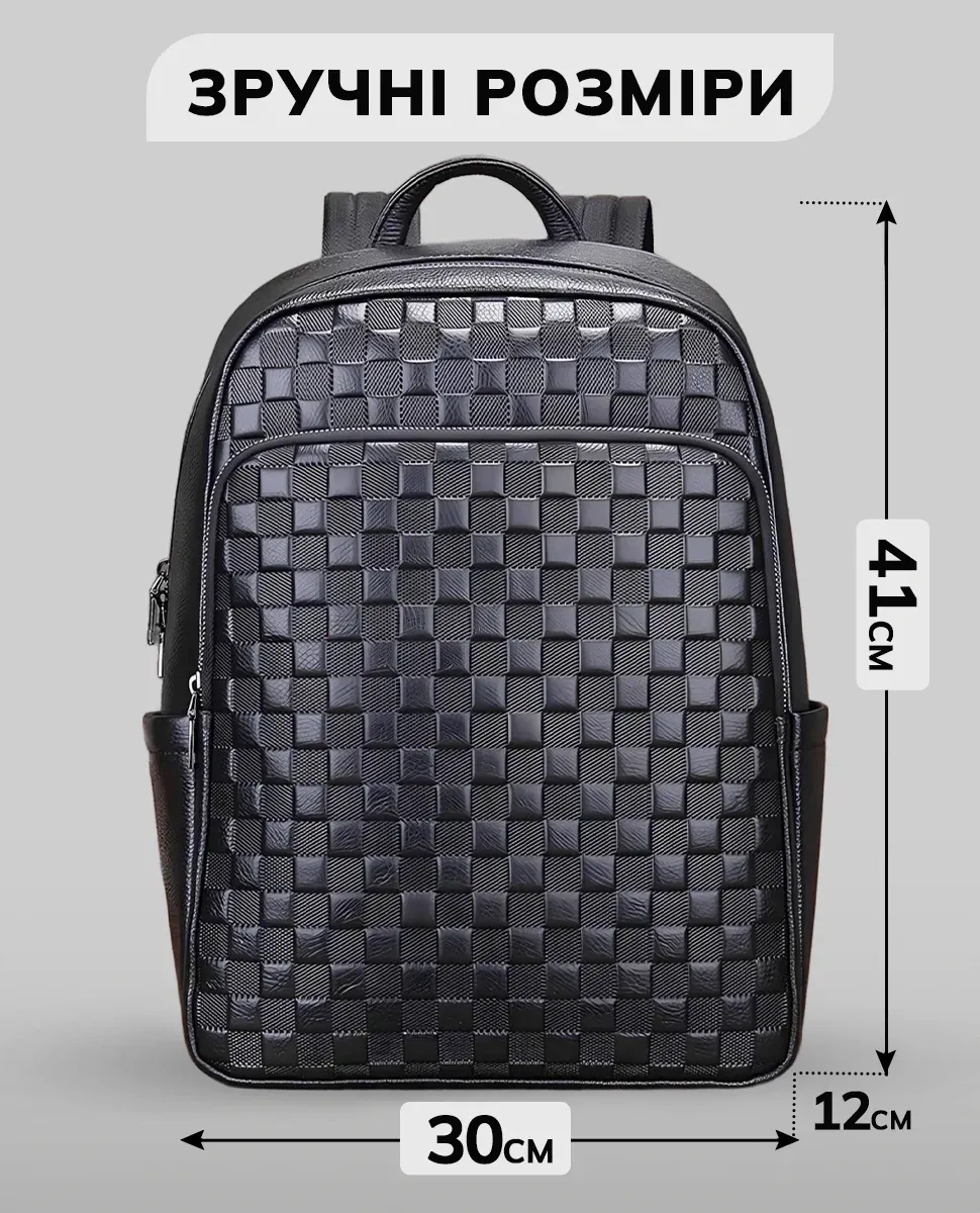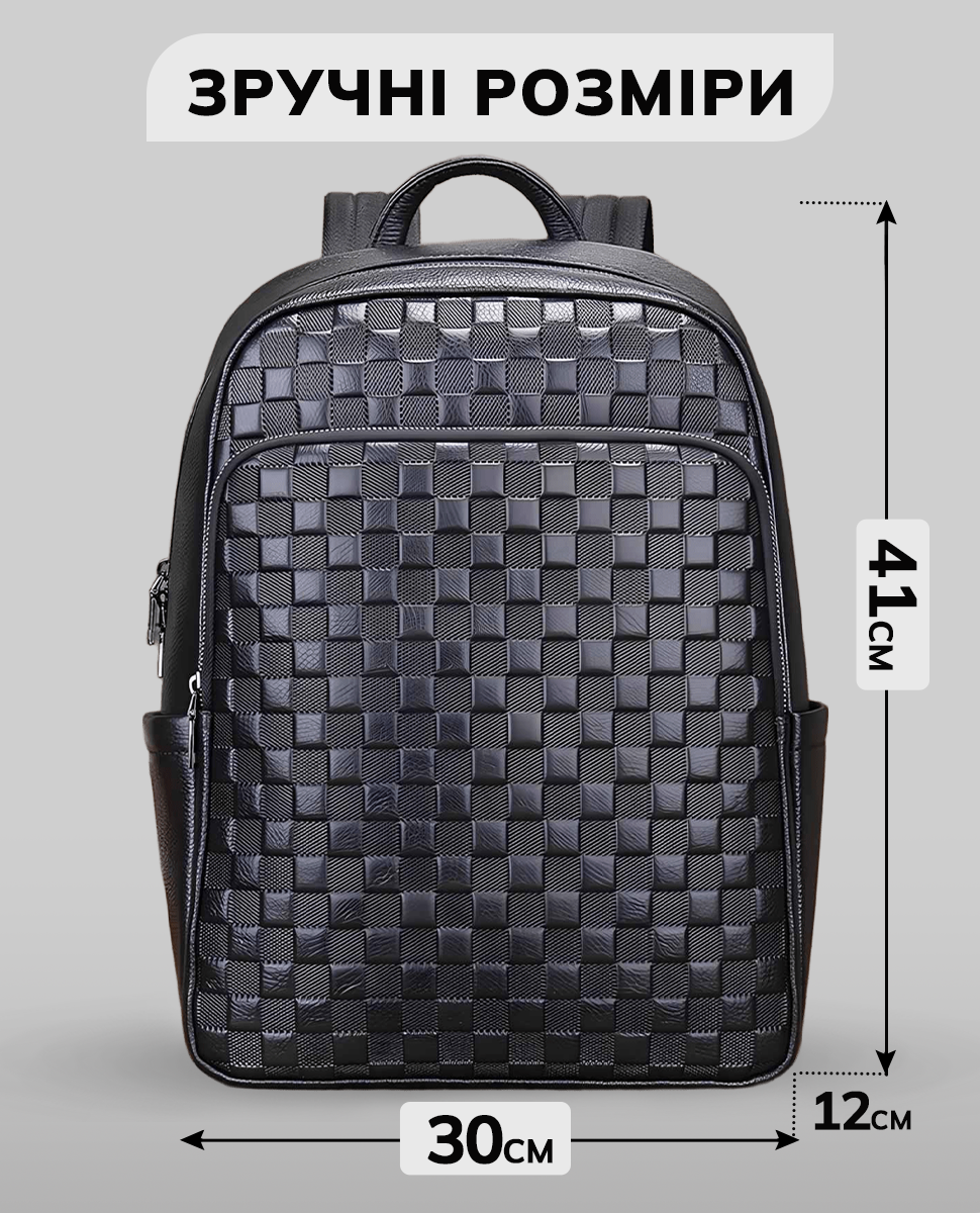 Рюкзак чоловічий шкіряний 30х41х15, міський наплічник для ноутбука та документів Tiding Bag 63989 чорний