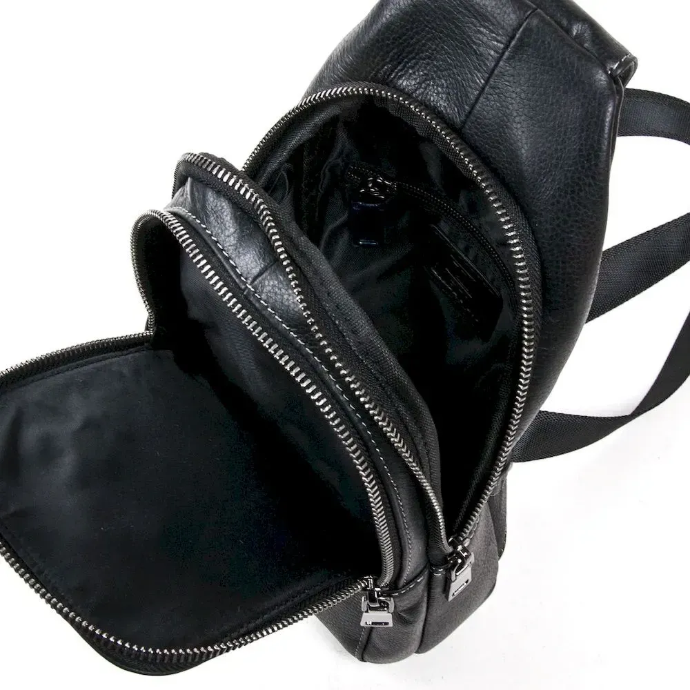 Шкіряна сумка-рюкзак Bretton. Можна носити як рюкзак на одній лямці або як сумку на плечі. Одне відділення закриються на блискавку. Усередині є бічна відкрита кишеня та кишеня на блискавці. На фасаді та на звороті знаходяться великі кишені на блискавці. Плечовий ремінь регулюється по довжині та переставляється на ліву-праву сторону.