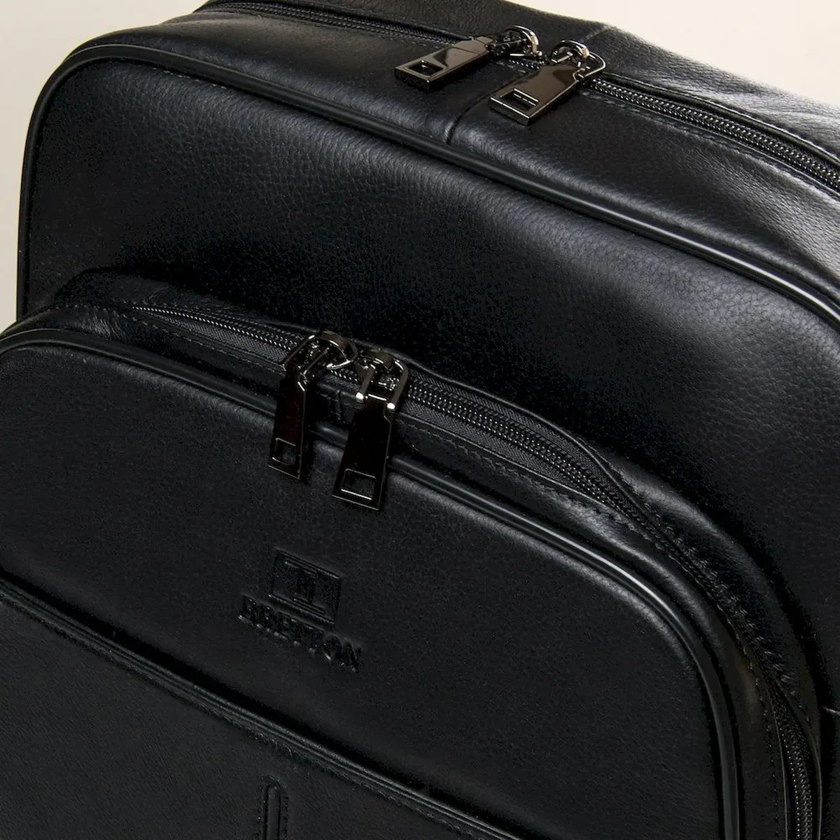 Великий чоловічий шкіряний рюкзак Bretton. Два відділення, що закриваються на блискавку. Усередині основного відділення знаходиться велика кишеня на блискавці, здвоєна кишеня для смартфона та кишеня для нетбука або планшета. На фасаді рюкзака розташована глибока кишеня на магнітній кнопці, а на звороті кишеня на блискавці. Широкі та м'які плечові лямки регулюються по довжині.