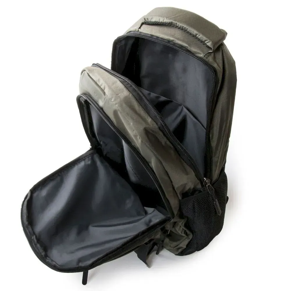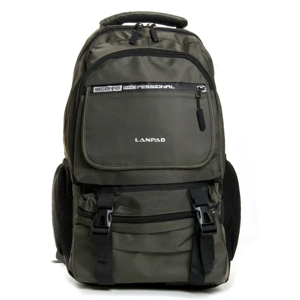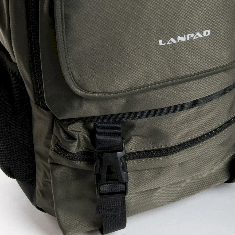 Рюкзак міський Lanpad. Виготовлений з матеріалу з водовідштовхувальним покриттям. Рельєфна спинка ущільнена. Два відділення, що закриваються на блискавку. Усередині є бічна відкрита подвійна кишеня та кишеня для ноутбука. На фасаді знаходиться дві кишені на блискавці і одна відкрита під клапаном. На бокових стінках є кишені-сітки. Плечові лямки регулюються за довжиною.