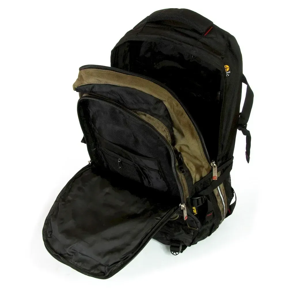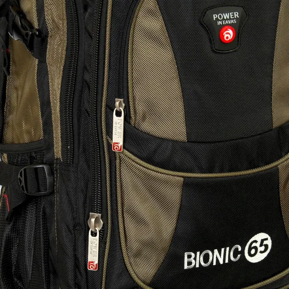 Великий міський рюкзак із щільною спинкою "Power in Eavas". Три відділення, що закриваються на блискавку. Усередині основного відділення є кишеня для ноутбука 17,3". бічна кишеня на блискавці і невеликі відкриті кишені. Середнє відділення з кишенею-органайзером. На фасаді розрощена одна кишеня на блискавці. На бічних сторонах рюкзака знаходяться кишені-сітки для пляшок води об'ємом 1 л Плечові лямки регулюються по довжині і оснащені грудним і поясним ременем Об'єм 65 літрів.