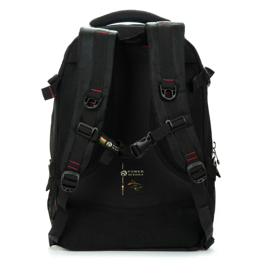 Плотная спинка с мягкими рельефными вставками для вентиляции. Внутри рюкзака находятся три отделения на молнии. В первом отделении расположен карман- органайзер, а в третьем отделении есть карман для ноутбука и карман для телефона. Также, из основного отделения есть выход для наушников на внешнюю стенку рюкзака. На фасаде находится карман на молнии. Снаружи на боковых сторонах рюкзака расположены карманы-сетки для бутылок воды объемом 0,5 литров.