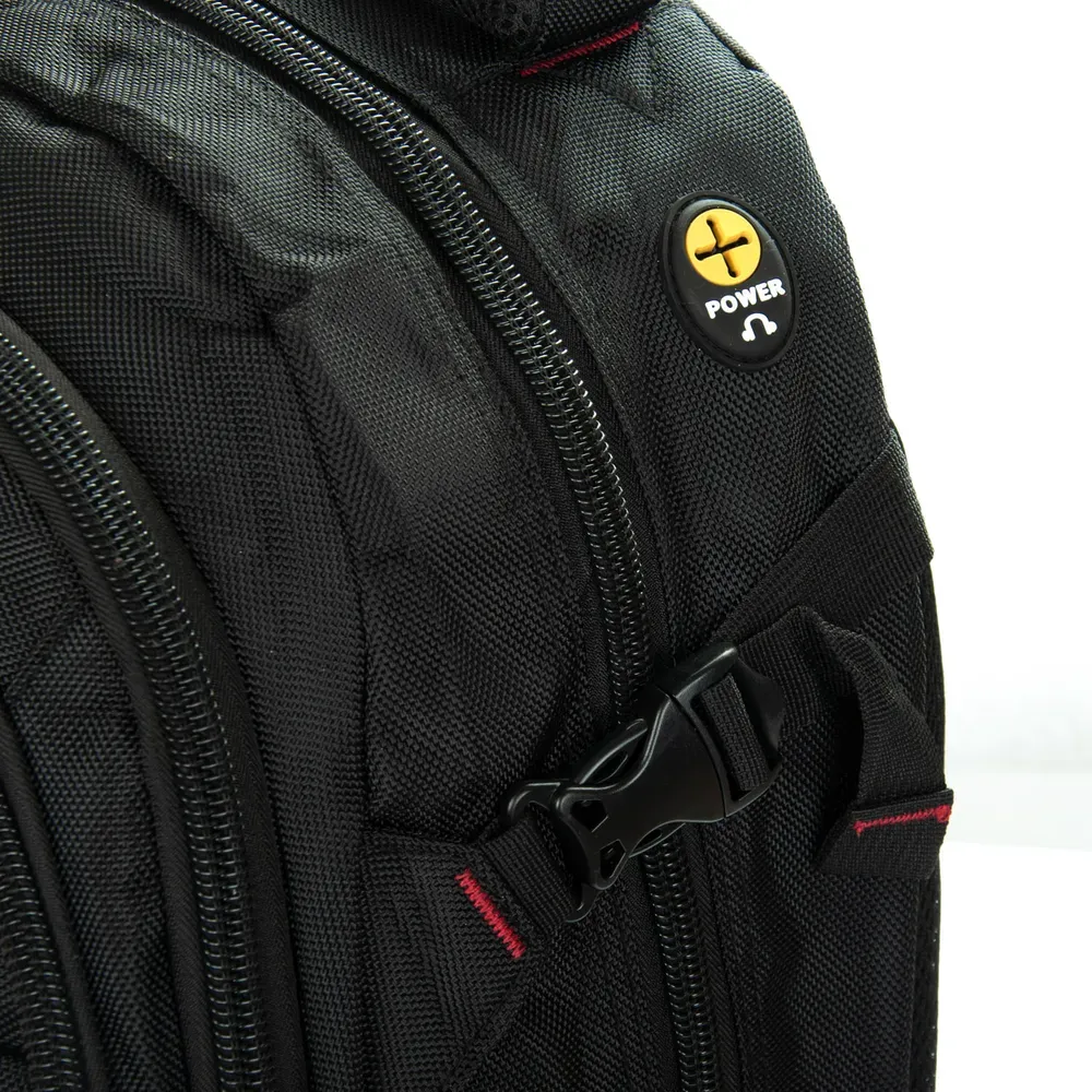 Три отделения, закрываются на молнию. Основное отделение с карманом для ноутбука, подвесным карманом для смартфона. В среднем отделении есть большой карман-органайзер.Также, из основного отделения есть выход для наушников на внешнюю стенку рюкзака. На фасаде рюкзака находится карман на молнии, На боковых сторонах рюкзака находятся открытые карманы-сетки.