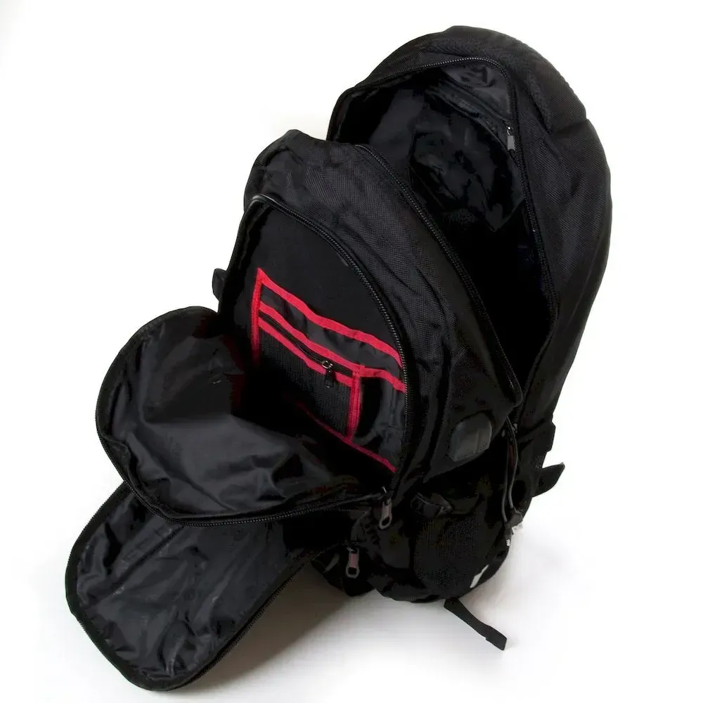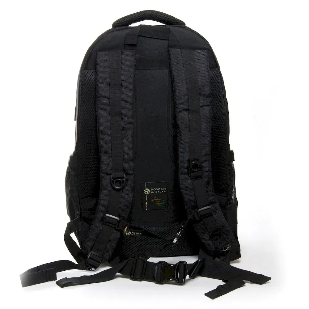 Великий міський рюкзак Power in Eavas. Щільна спинка з м'якими рельєфними вставками для вентиляції. Усередині рюкзака знаходяться два відділення на блискавці. У першому відділенні розташована кишеня-органайзер, а у другому відділенні є кишеня для ноутбука та кишеня для телефону. Також з другого відділення виведено USB та кабель для навушників на зовнішню стінку рюкзака. На фасаді знаходиться одна велика і одна маленька кишеня на блискавці. Зовні рюкзака на бокових сторонах розташовані кишені-сітки для пляшок води об'ємом 0,5 літра. Плечові лямки регулюються по довжині та оснащені грудною стяжкою та поясним ременем. Розмір (см.): 50*35*25