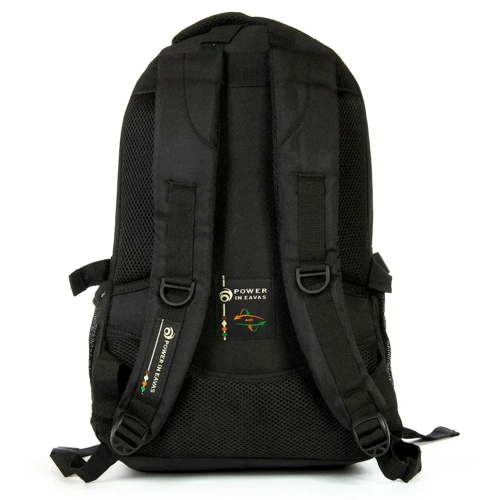 Міський рюкзак "Power in Eavas", щільна спинка з м'якими вставками. Усередині рюкзака два відділення на блискавці. У першому відділенні розташована кишеня-органайзер, у другому відділенні є кишеня для ноутбука і кишеня для телефону. На фасаді знаходиться велика кишеня на блискавці. Зовні на бокових сторонах рюкзака кишені-сітки для пляшок води об'ємом 0,5 літра. Плямові лямки регулюються за довжиною.