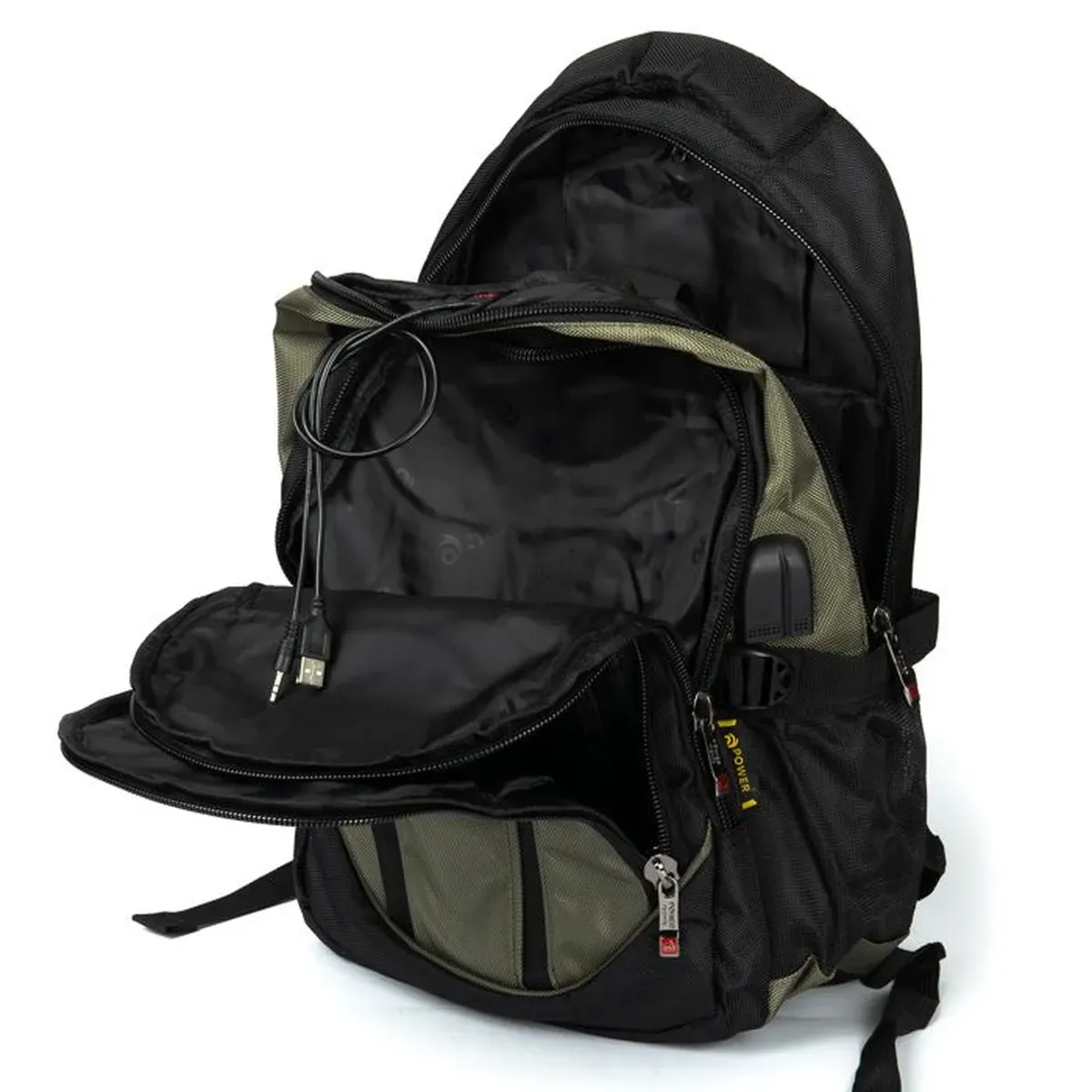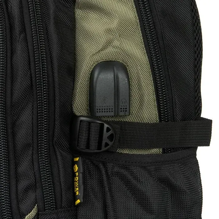 Городской рюкзак "Power in Eavas", плотная спинка с мягкими вставками. Внутри рюкзака два отделения на молнии. В первом отделении расположен карман- органайзер, во-втором отделении есть карман для ноутбука и карман для телефона. Также, из второго отделения выведены USB и кабель для наушников на внешнюю стенку рюкзака. На фасаде находится большой карман на молнии. Снаружи на боковых сторонах рюкзака карманы-сетки для бутылок воды объемом 0,5 литров. Плечевые лямки регулируются по длине. Размер (см.): 45*30*10
