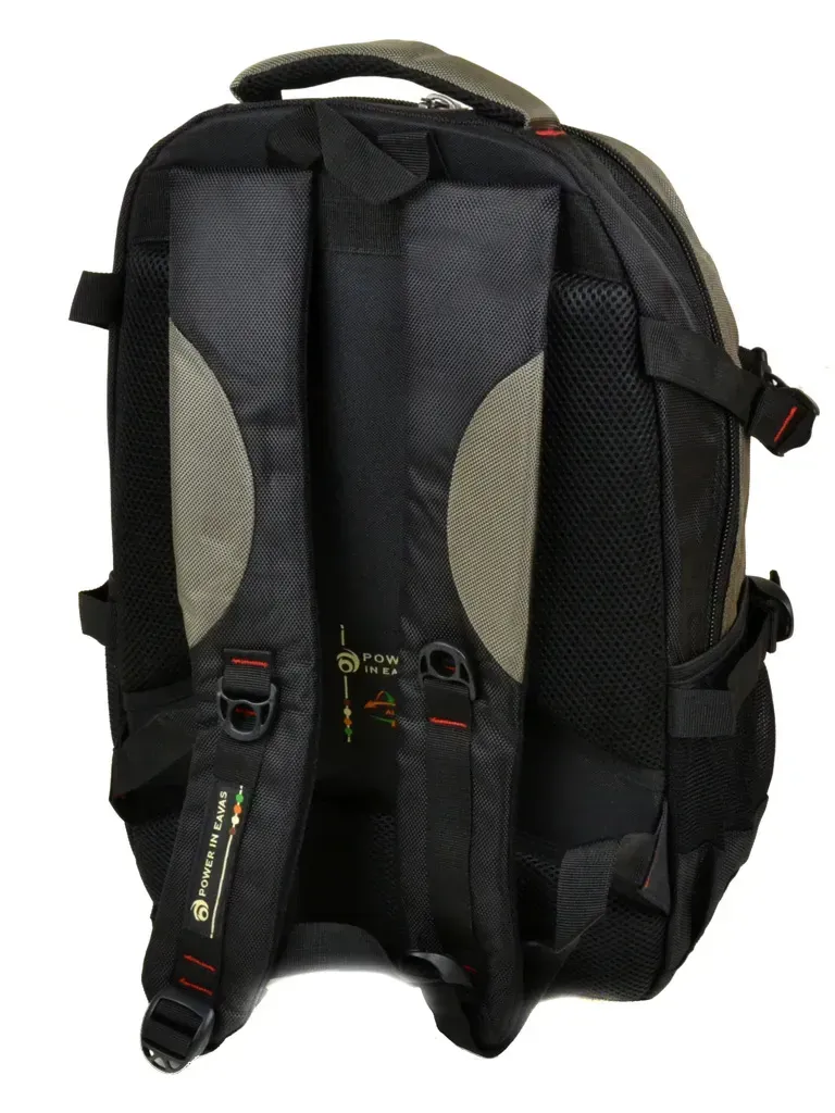 Городской рюкзак "Power in Eavas", плотная спинка с мягкими вставками. Внутри рюкзака два отделения на молнии. В первом отделении расположен карман- органайзер, во-втором отделении есть карман для ноутбука и карман для телефона. На фасаде находится карман на молнии. Снаружи на боковых сторонах рюкзака карманы-сетки для бутылок воды объемом 0,5 литров. Плечевые лямки регулируются по длине.