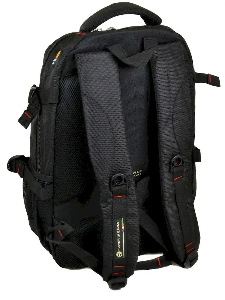 Міський рюкзак Power in Eavas, щільна спинка з м'якими вставками. Усередині рюкзака два відділення на блискавці. У першому відділенні розташована кишеня-органайзер, у другому відділенні є кишеня для ноутбука та кишеня для телефону. На фасаді знаходиться кишеня на блискавці. Зовні на бокових сторонах рюкзака кишені-сітки для пляшок води об'ємом 0,5 літра. Плямові лямки регулюються по довжині.