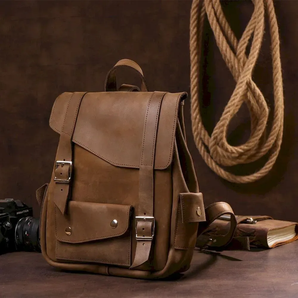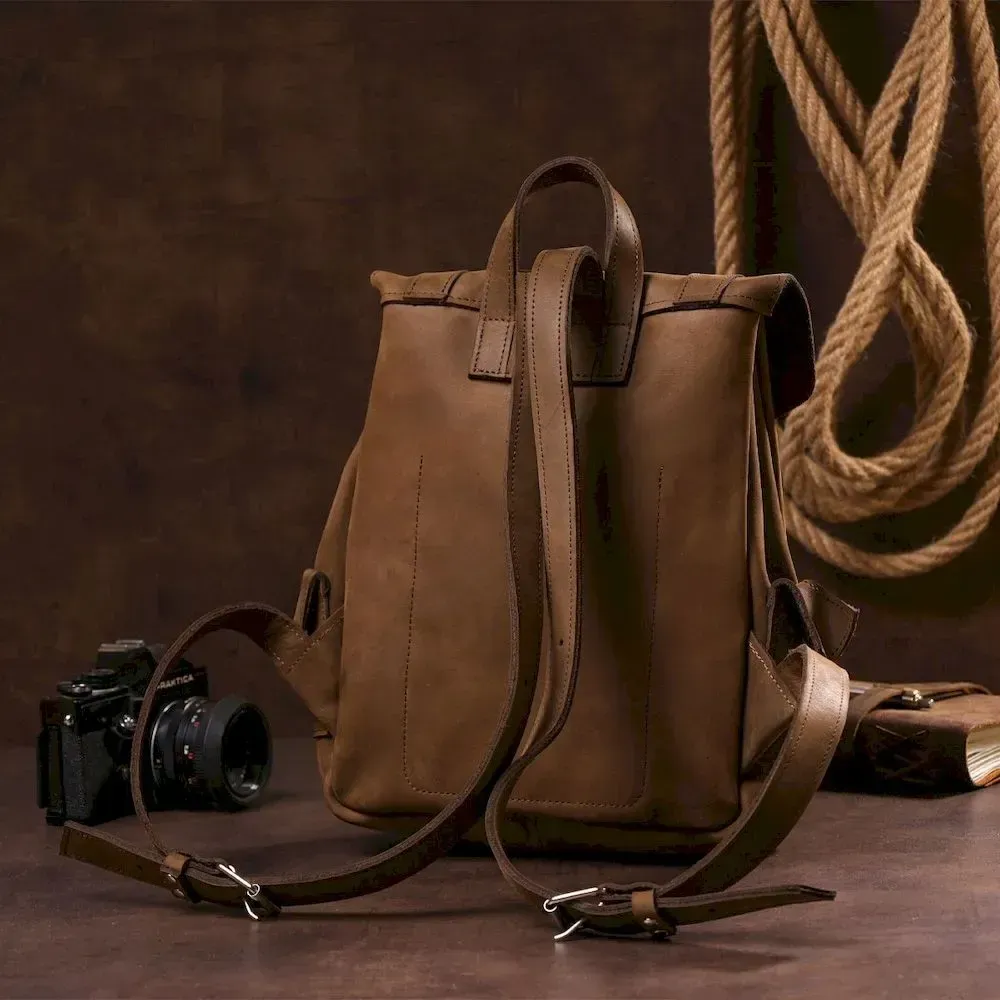 Рюкзак зі шкіри Crazy horse унісекс SHVIGEL 13948 Коричневий.