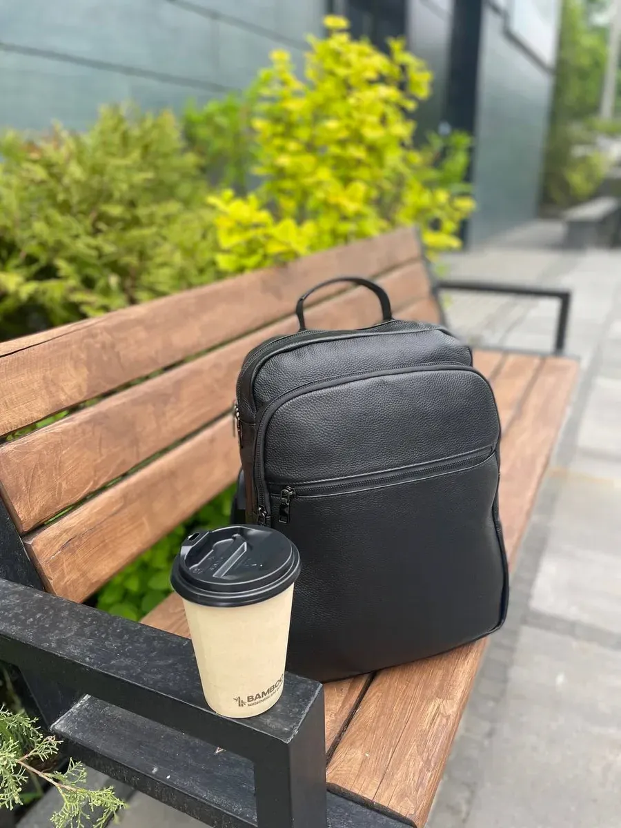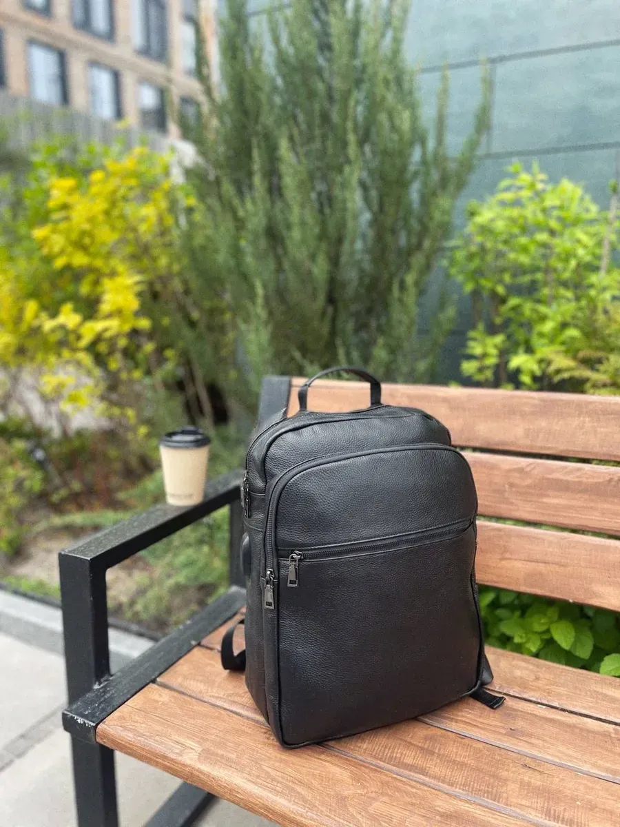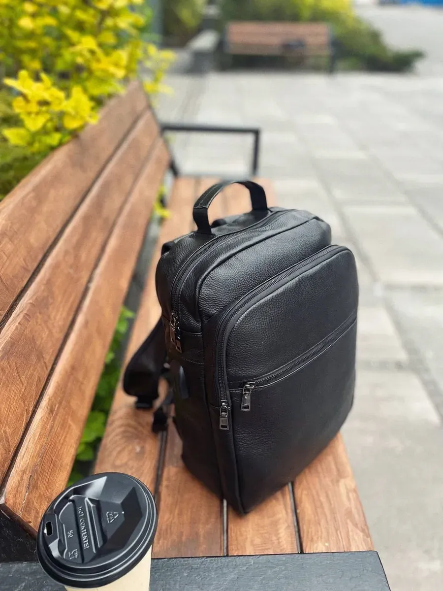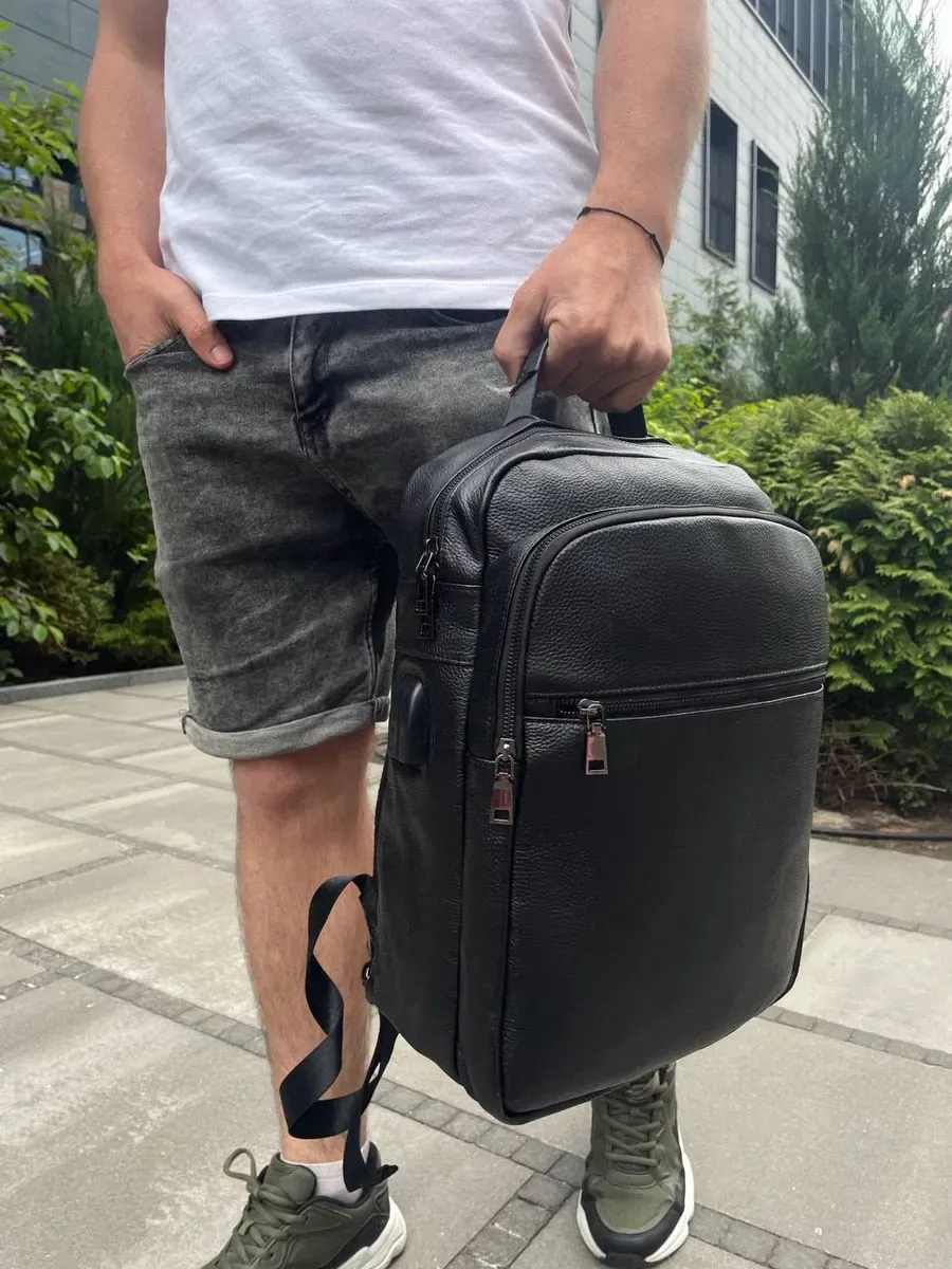 Рюкзак шкіряний для чоловіка 29х40х15, чорний колір