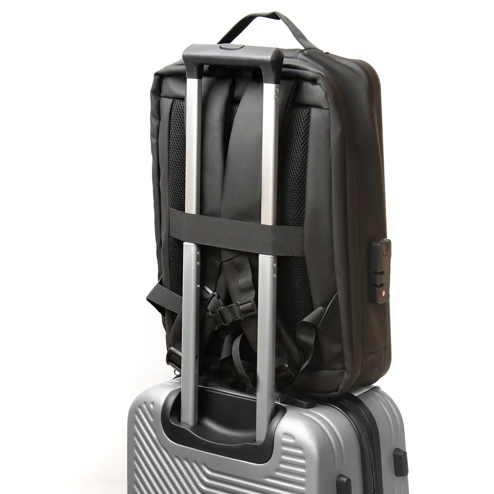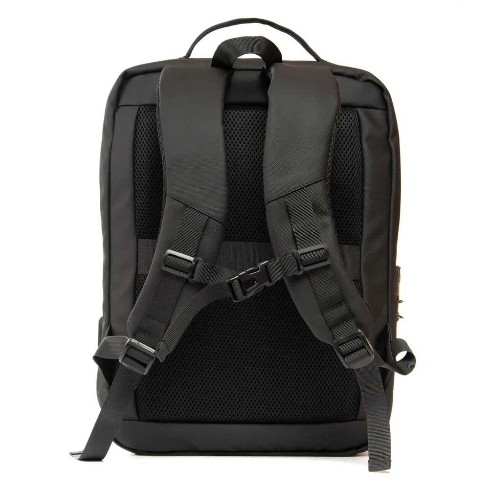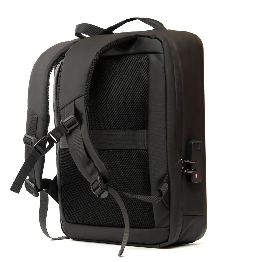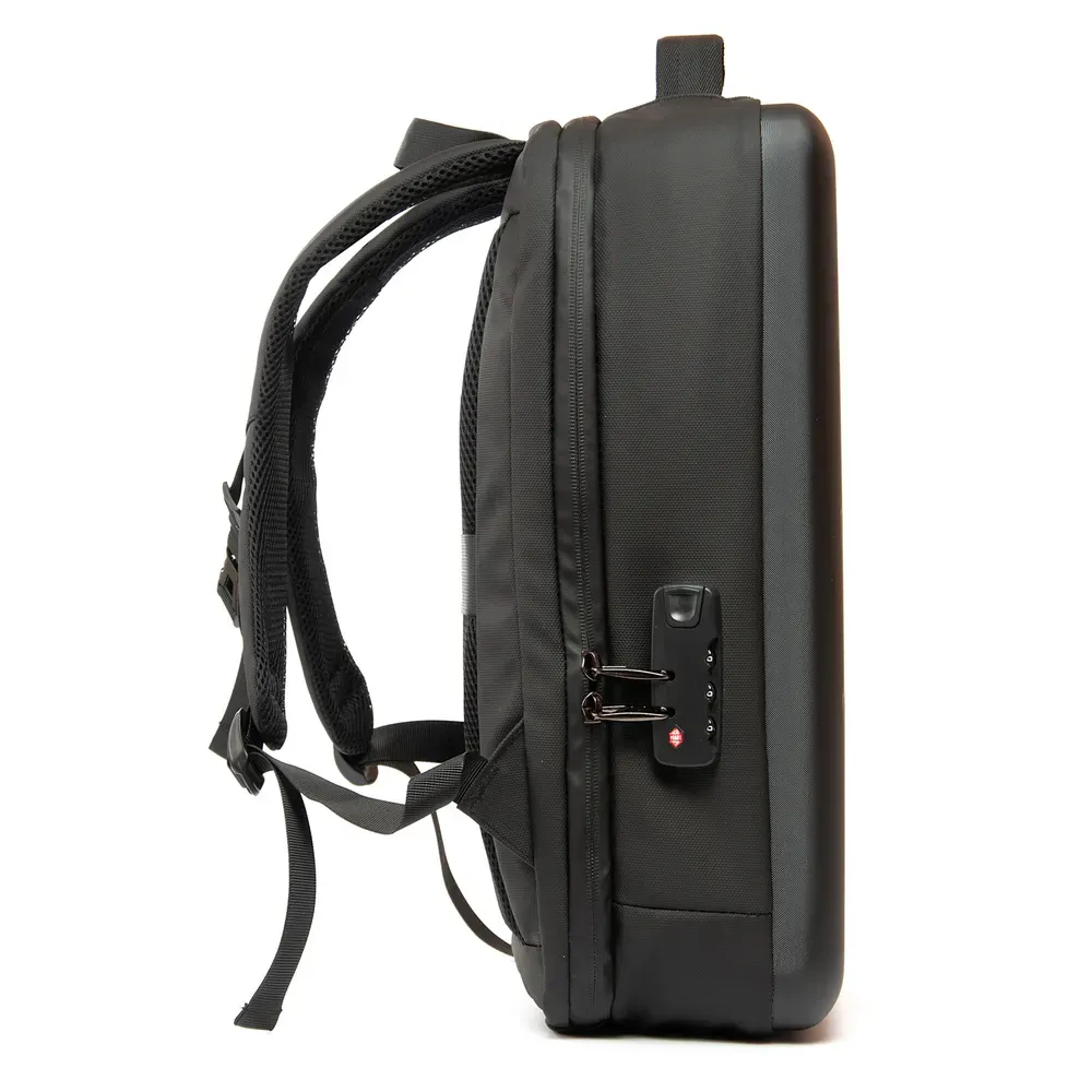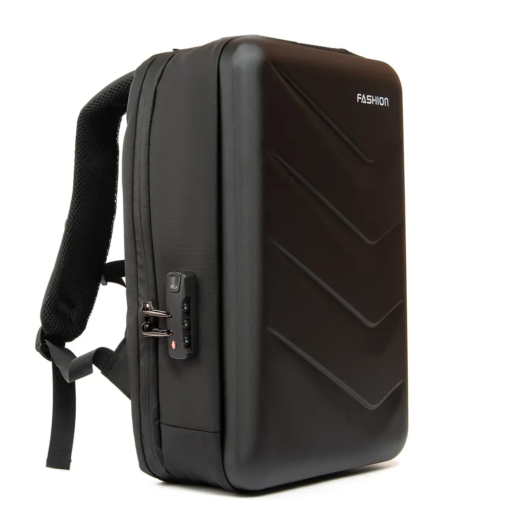 Фасадная часть выполнена из прочного ABS пластика + водонепроницаемые боковые стороны рюкзака с дополнительным защитным клапаном для молнии.