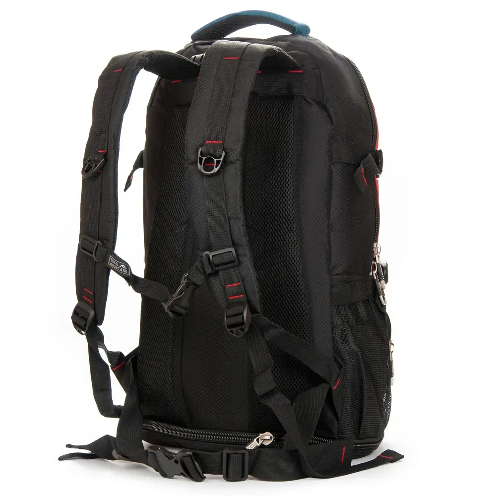 Уплотненная спинка. Одно основное отделение с карманом для ноутбука и карманом для смартфона. Отделение может увеличиваться в высоту на 10см. благодаря молнии расширения. На фасаде находятся два больших кармана на молнии, дополнительная ручка и светоотражающая полоса. На боковых сторонах рюкзака карманы-сетки для бутылок воды объемом 0,5 л. Плечевые лямки регулируются по длине и оснащены грудным ремнем-стяжкой.