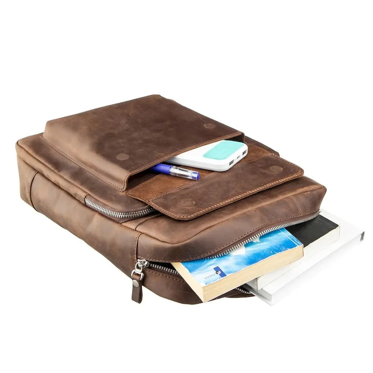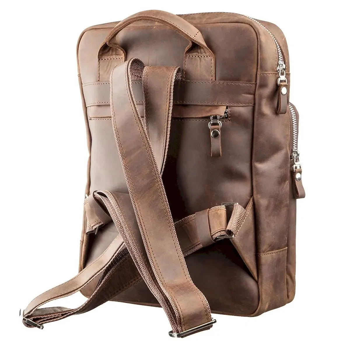 Рюкзак із натуральної шкіри Crazy horse. Підійде як для чоловіків, так і для жінок. Всередині рюкзака якісна текстильна підкладка коричневого кольору. Шкіряний рюкзак є відмінним рішенням для тих, хто не хоче носити сумки. Із рюкзаком дуже зручно. Рюкзак з натуральної шкіри ви проносите далеко не один рік. Модель має оригінальний класичний дизайн і доповнена сріблястою фурнітурою.