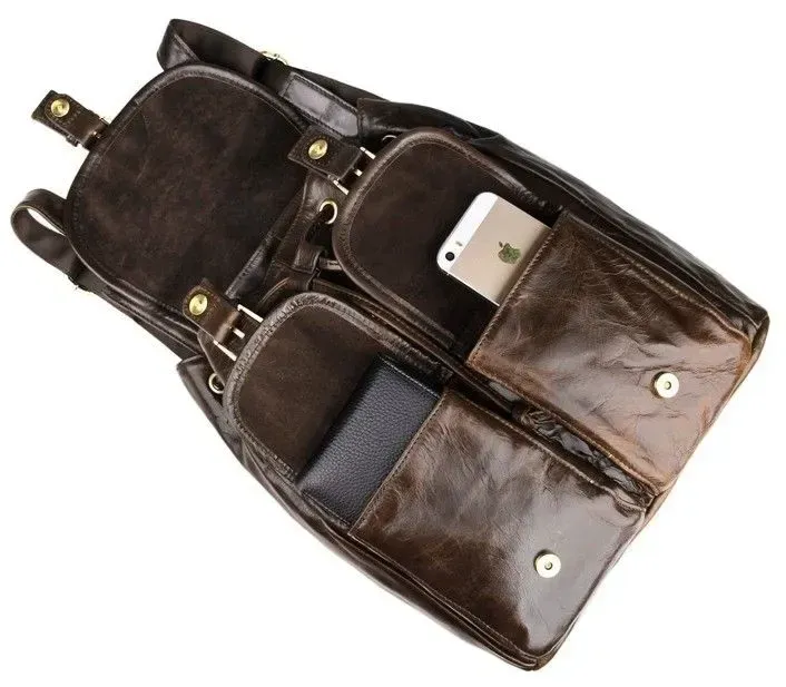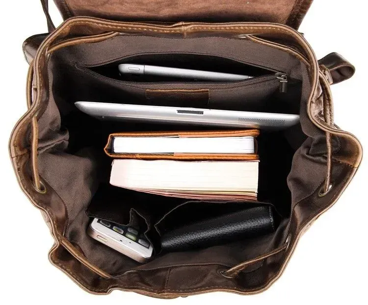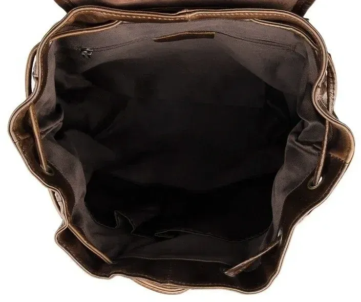 - закривається клапаном на магнітній кнопці і стягується шкіряним шнурком;