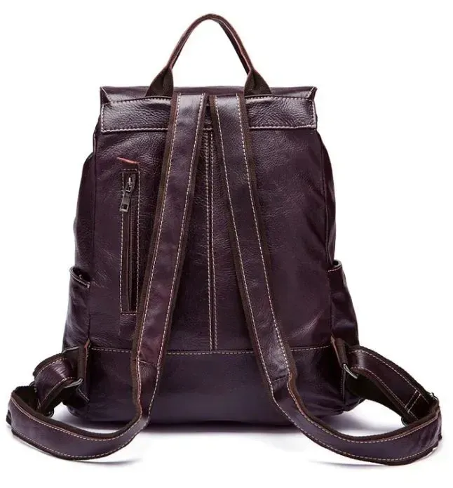 Дуже місткий шкіряний рюкзак сливового кольору. Аксесуар м'який на дотик. Відмінний варіант як для міста, так і в поїздку. Модель підійде як для чоловіків, так і для жінок. Аксесуар не важкий. Рюкзак дуже добре носиться та зручний у використанні. Колір фурнітури: чорний метал. По краях прошитий світлою ниткою. Підкладка аксесуара виконана з міцного текстильного матеріалу коричневого кольору. Є зручна ручка для зручності в руці та лямки на плечі. Ідеальний та довгоочікуваний подарунок для близької людини. Впевнені, якістю ви будете задоволені. Рюкзак упакований у тканинний мішок.