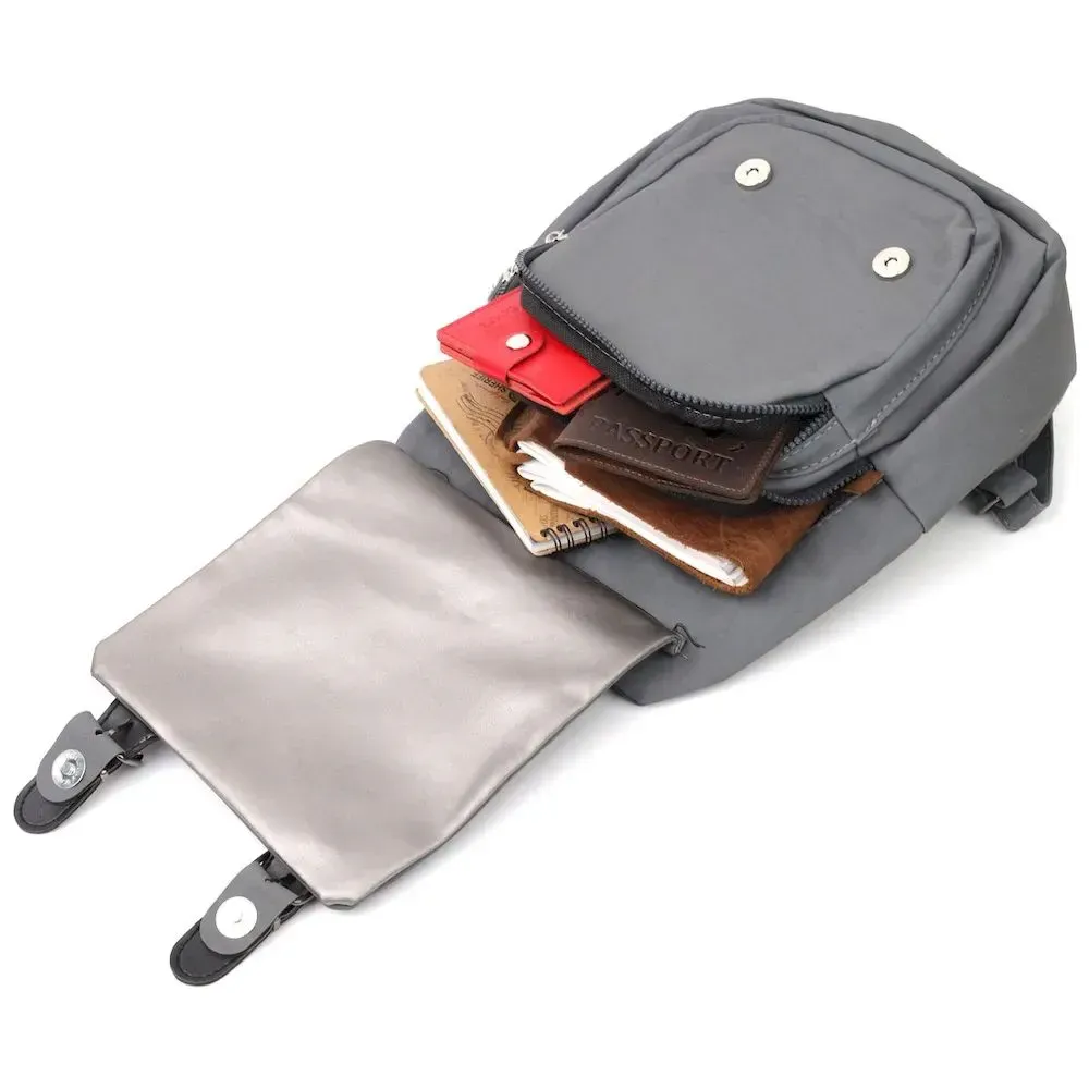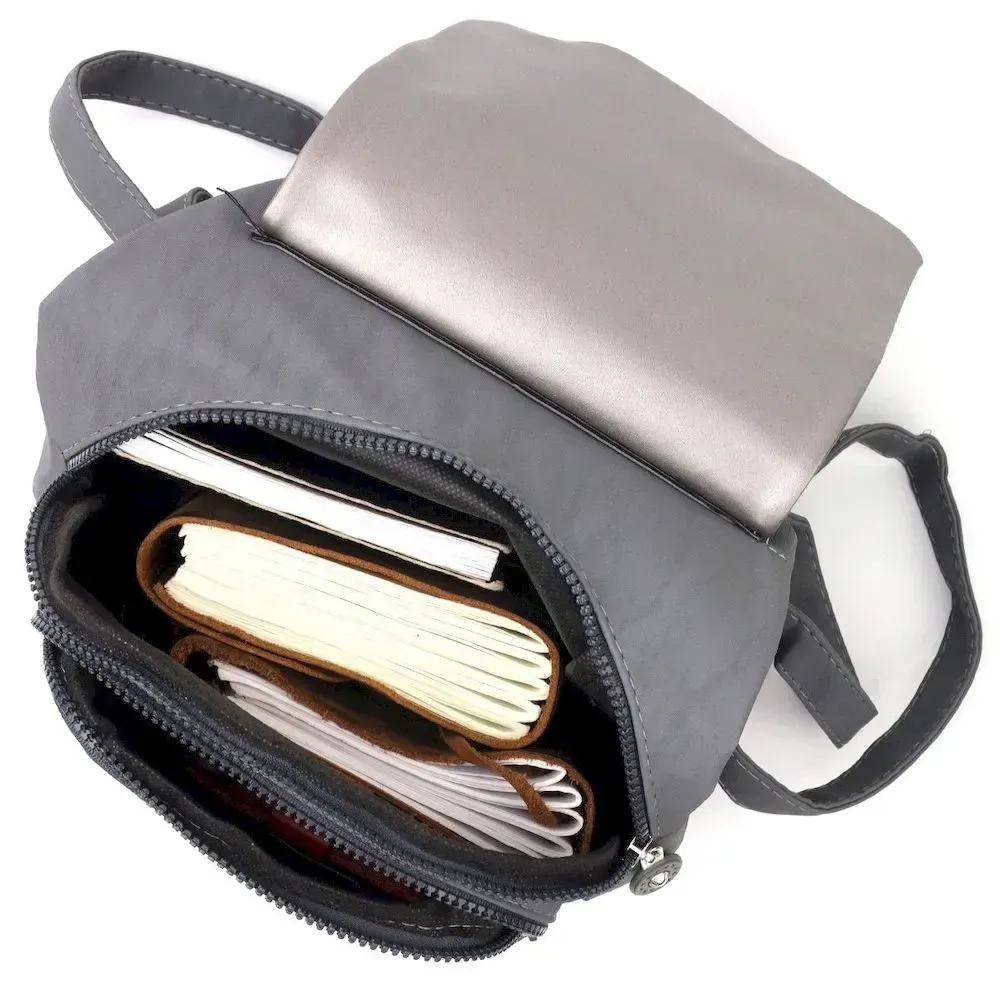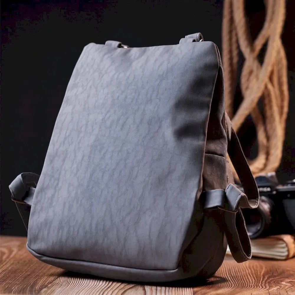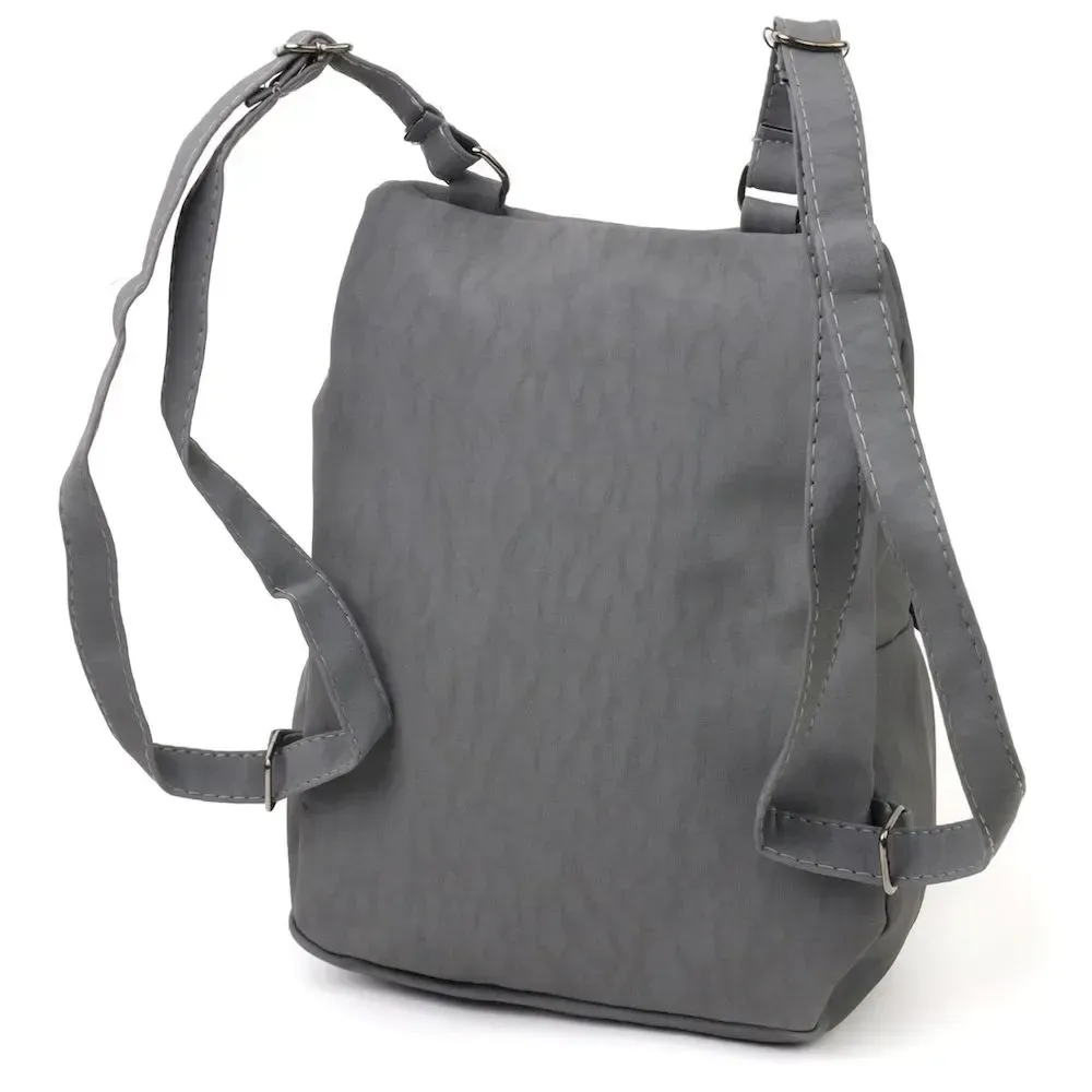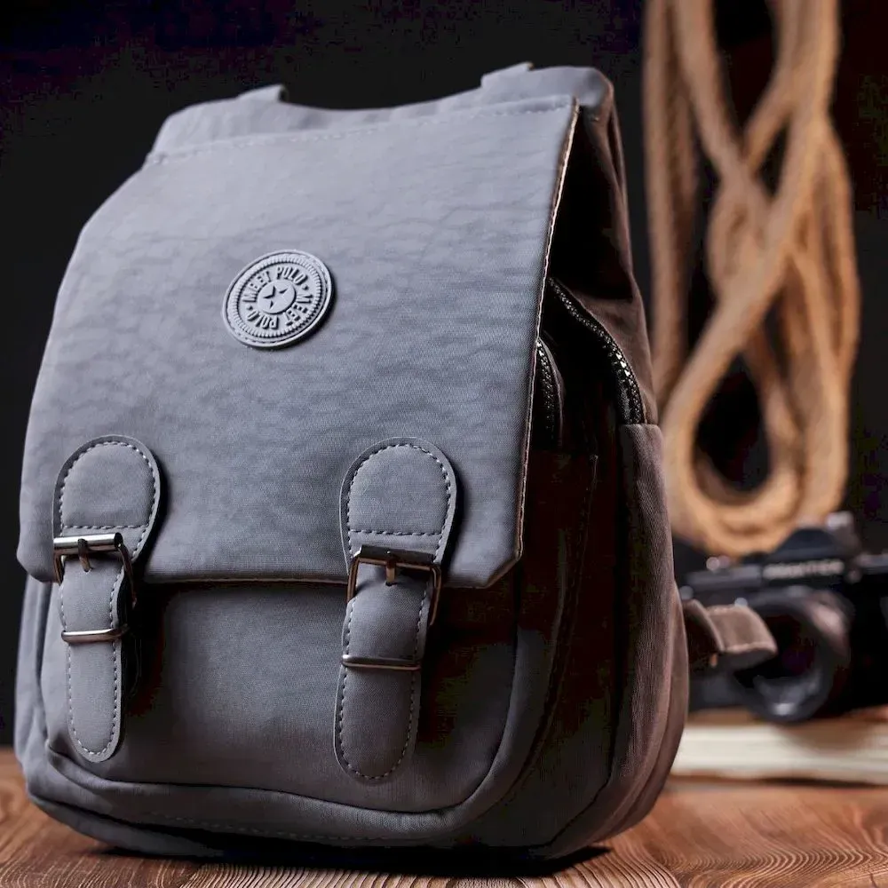 Легкий рюкзак- сумка з якісного текстилю, сірого кольору. Виріб має оптимальний розмір. Доповнено виріб міцною фурнітурою. Рюкзак має достатньо кишеньок для вашої зручності. Закривається клапаном на магнітах. Рюкзак стане чудовим подарунком для ваших близьких та друзів.