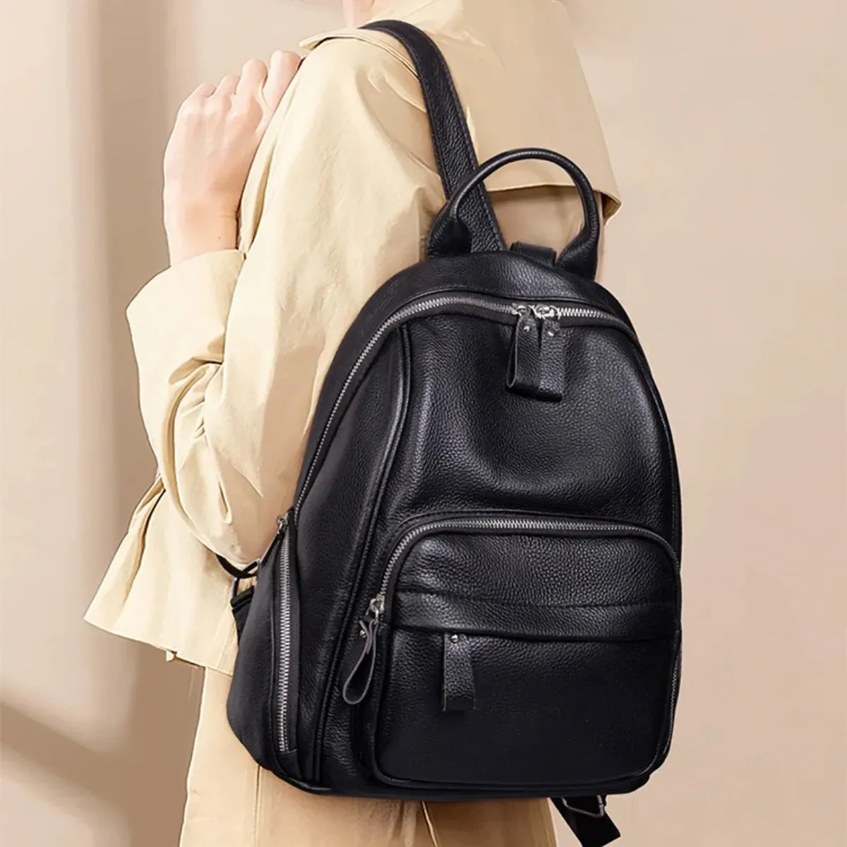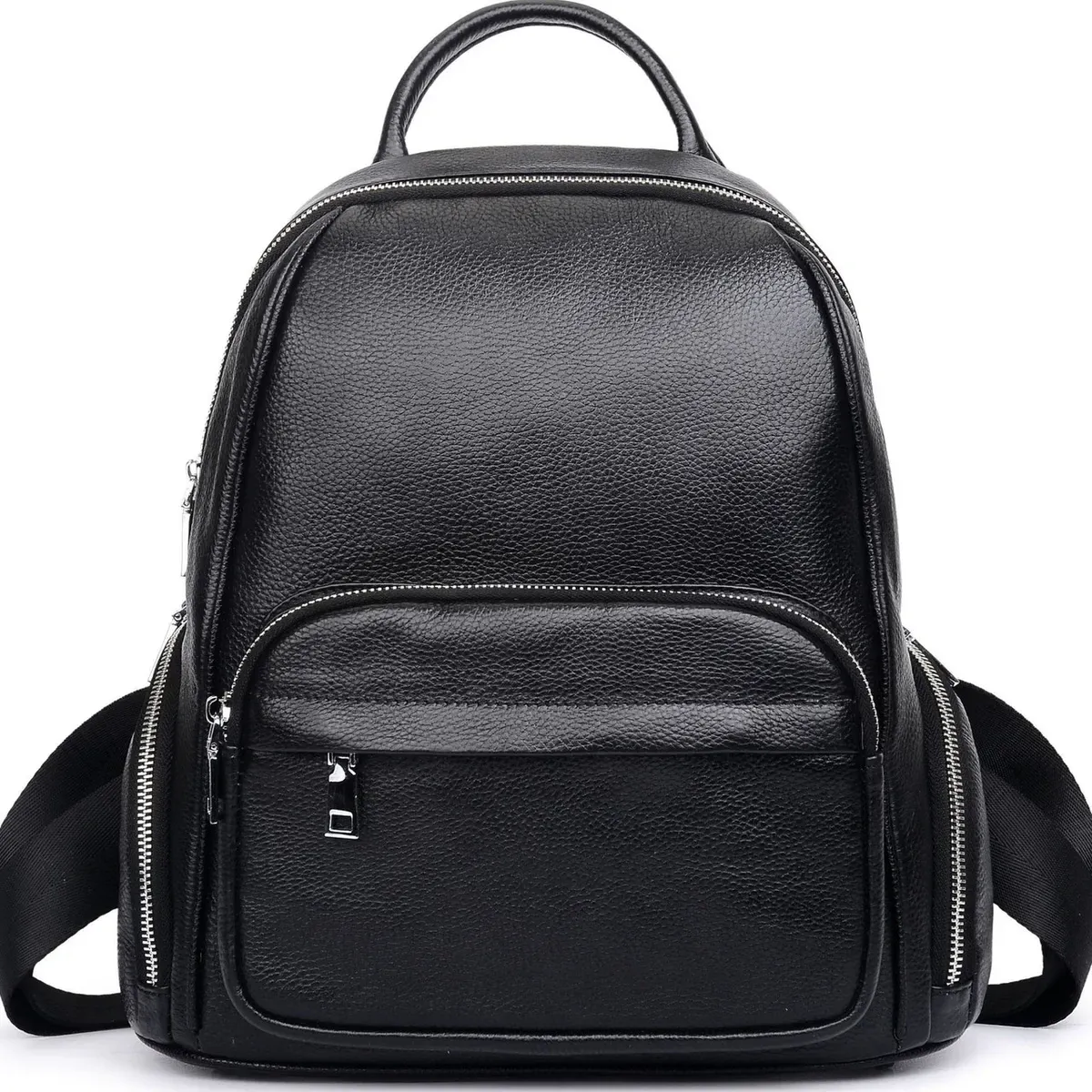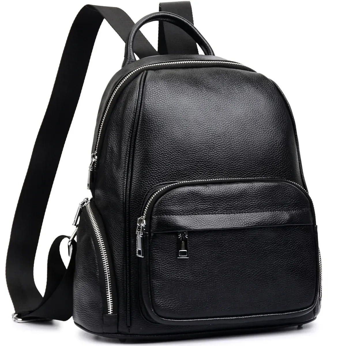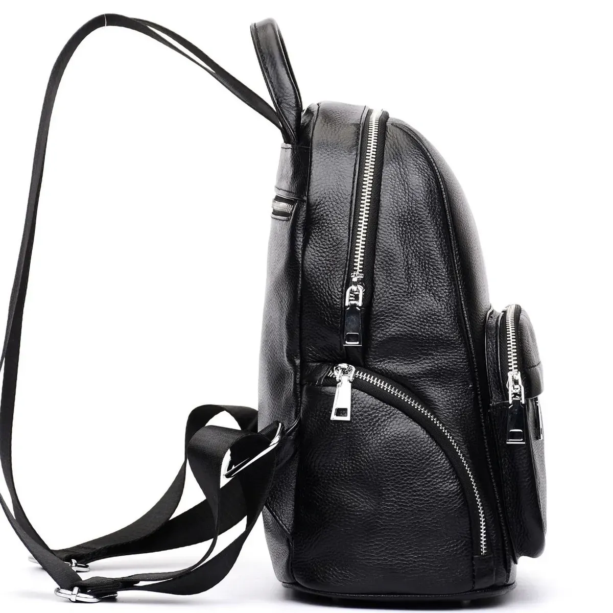 Рюкзак жіночий шкіряний 29х31х12, практична наплічна сумка для міста, чорна