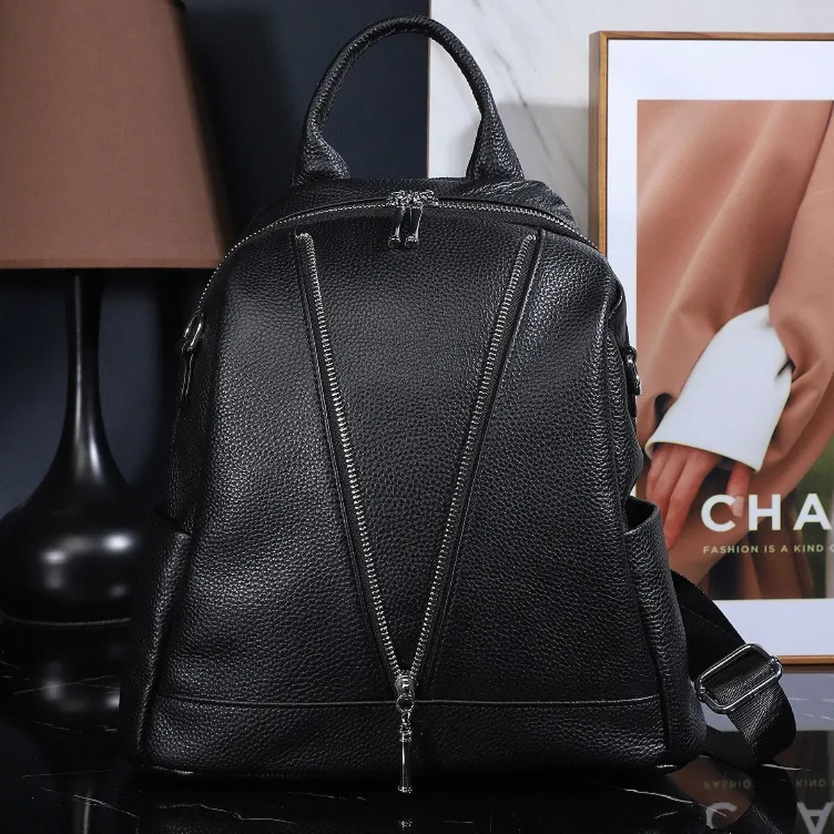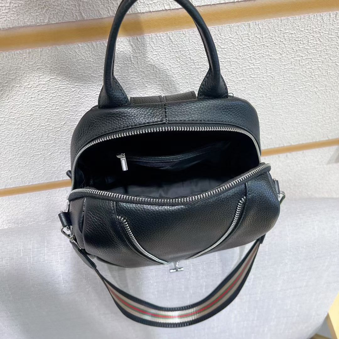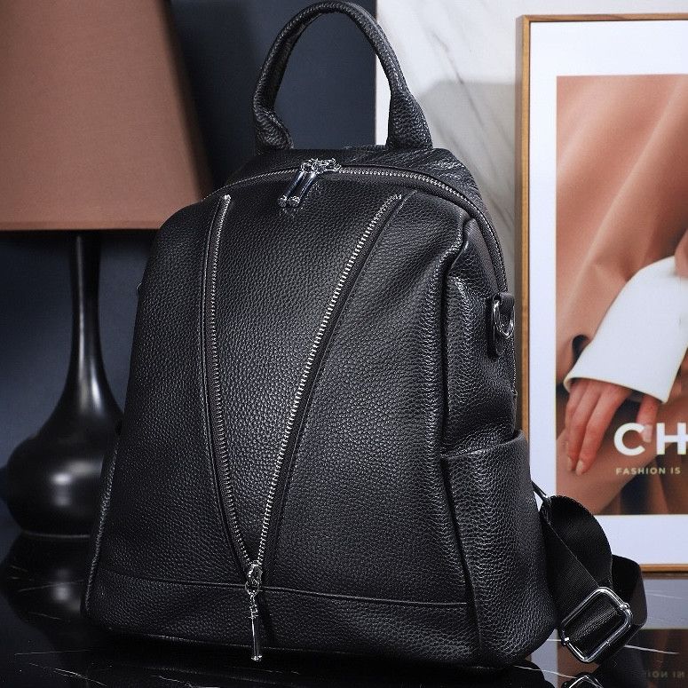 Стильний аксесуар для дівчат і жінок, необхідний для повсякденного життя, яка стає динамічнішою, активнішою та швидкіснішою. У такий практичний і функціональний рюкзак дасть змогу розмістити багато різноманітних речей. Виготовлений із натуральної шкіри, у практичному чорному кольорі, який буде доречний у будь-якій колірній гамі гардероба. Вміщує документи формату А5.