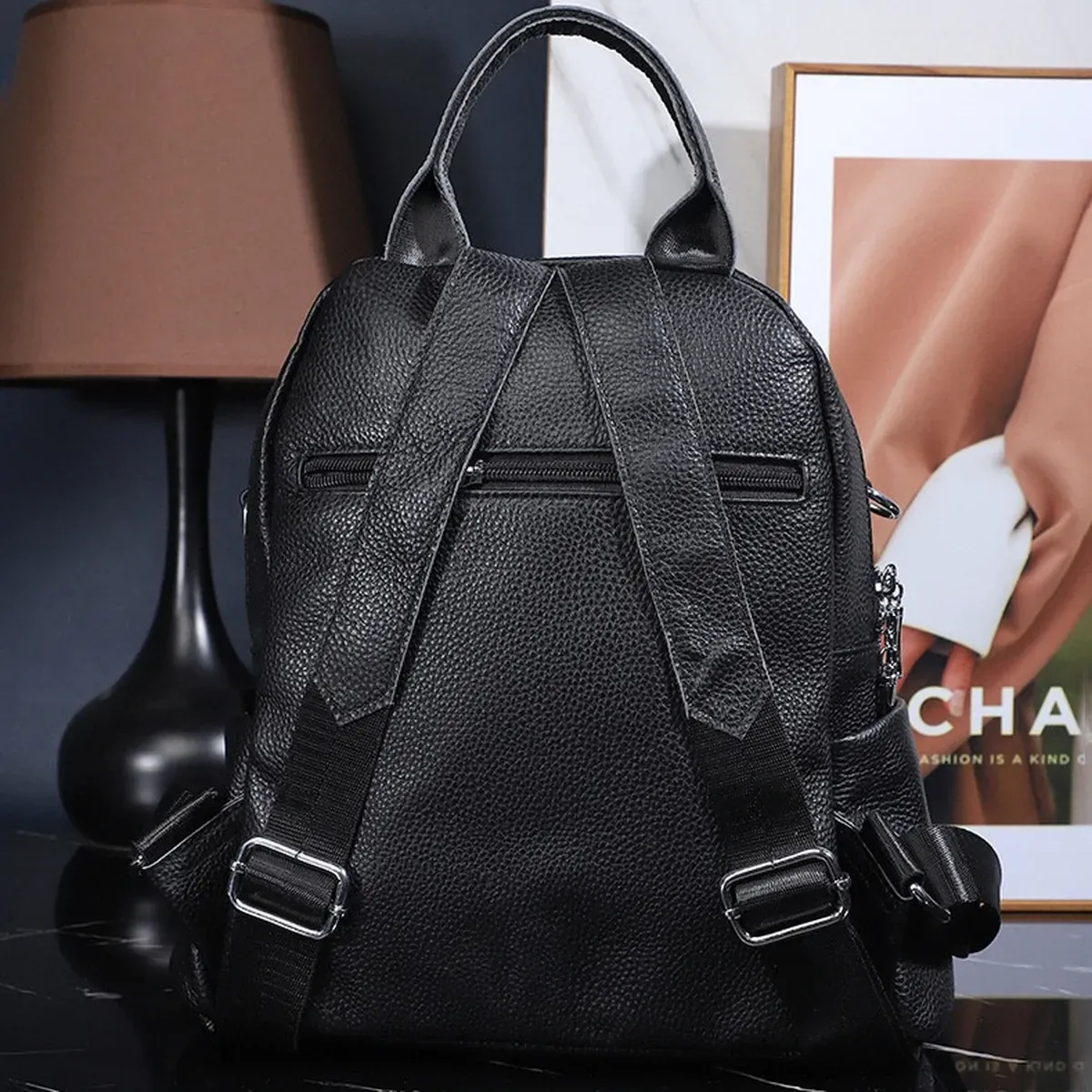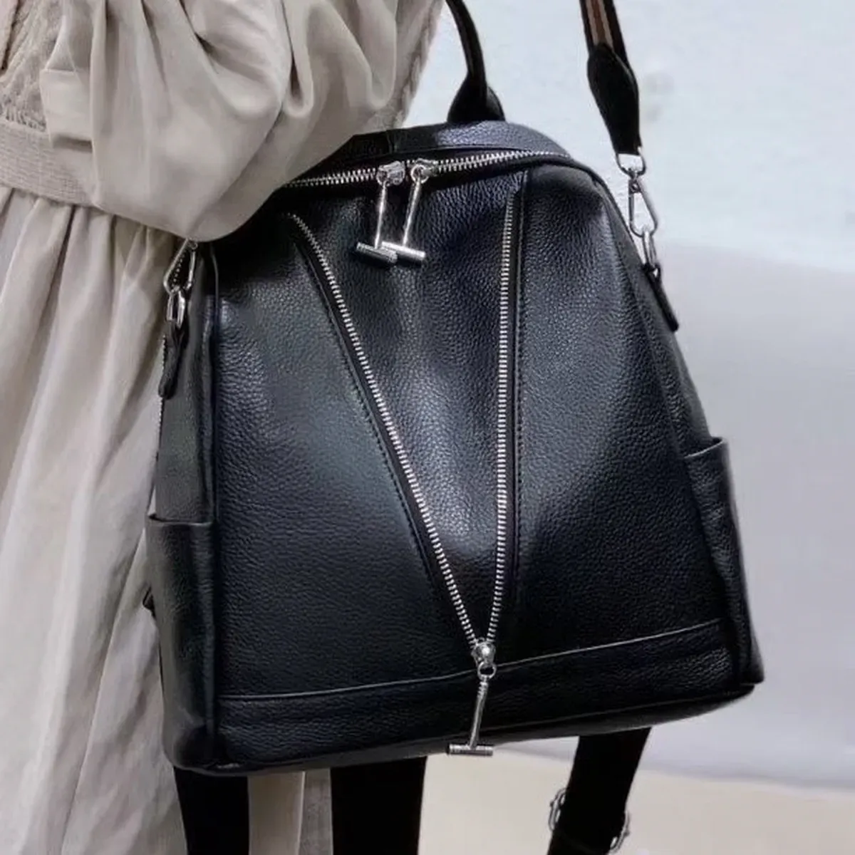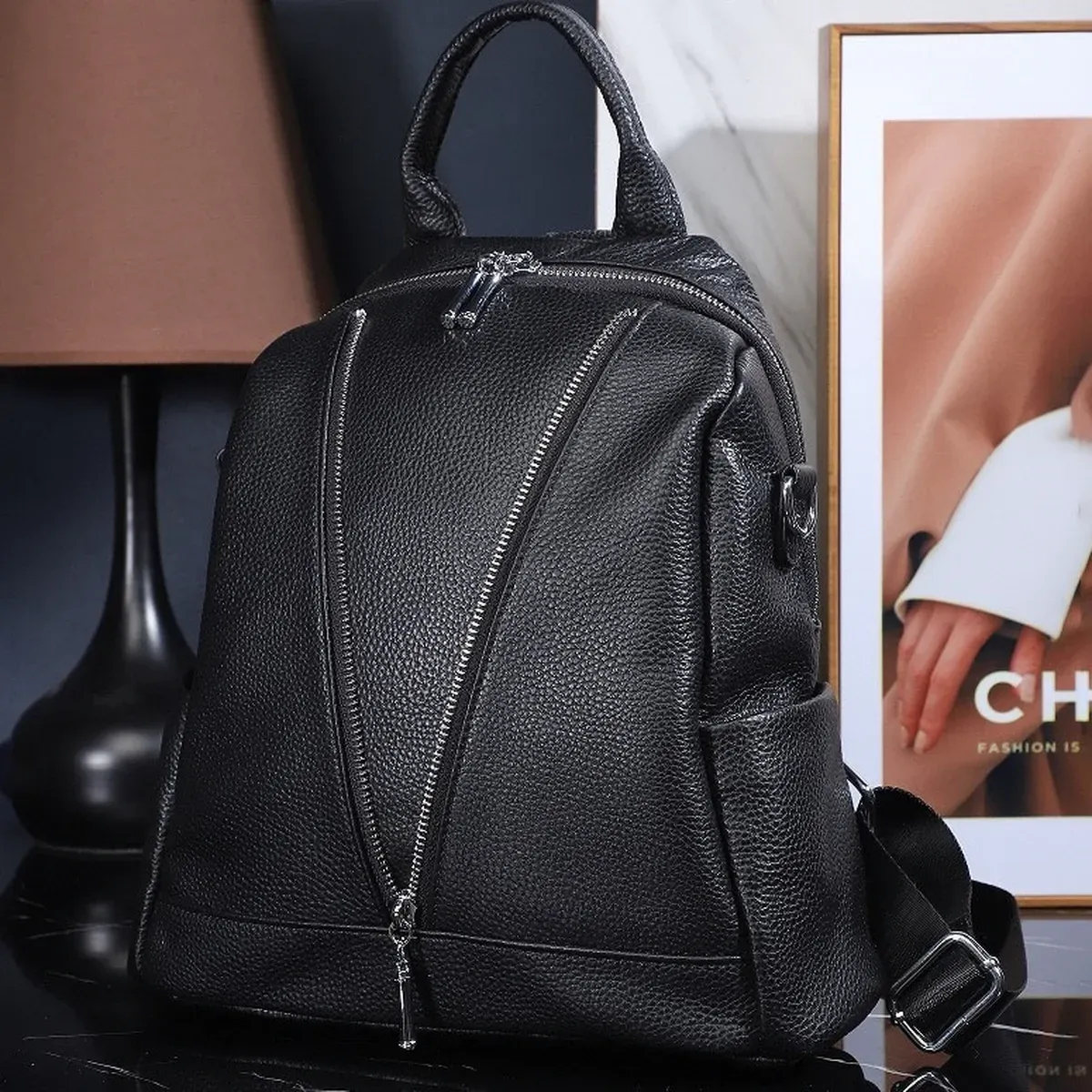 Стильний аксесуар для дівчат і жінок, необхідний для повсякденного життя, яка стає динамічнішою, активнішою та швидкіснішою. У такий практичний і функціональний рюкзак дасть змогу розмістити багато різноманітних речей. Виготовлений із натуральної шкіри, у практичному чорному кольорі, який буде доречний у будь-якій колірній гамі гардероба. Вміщує документи формату А5.