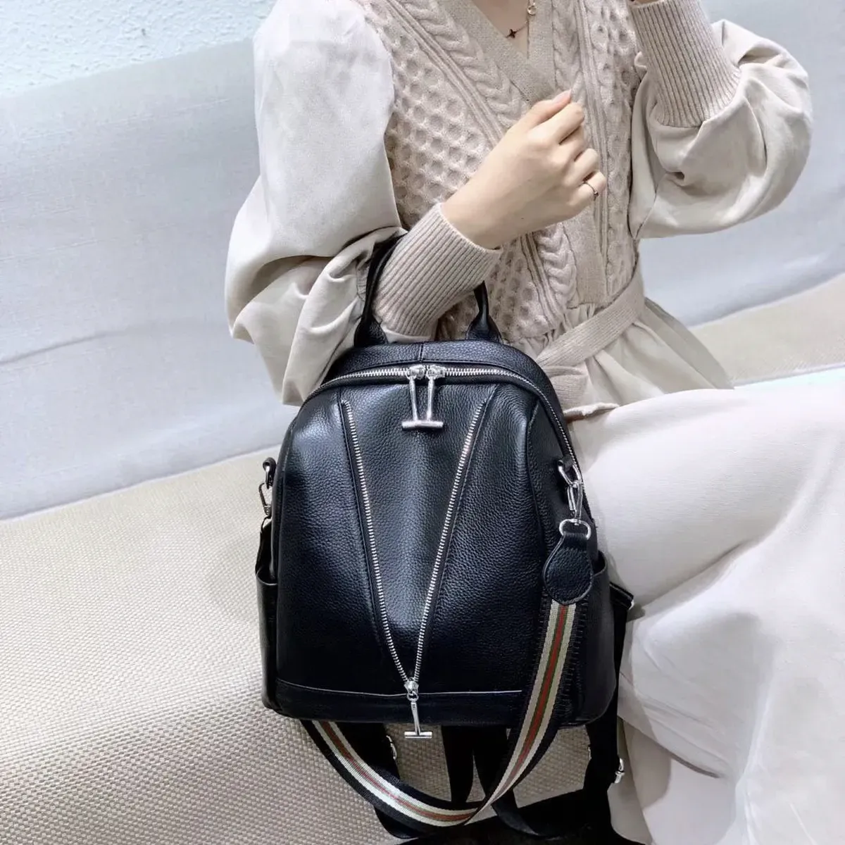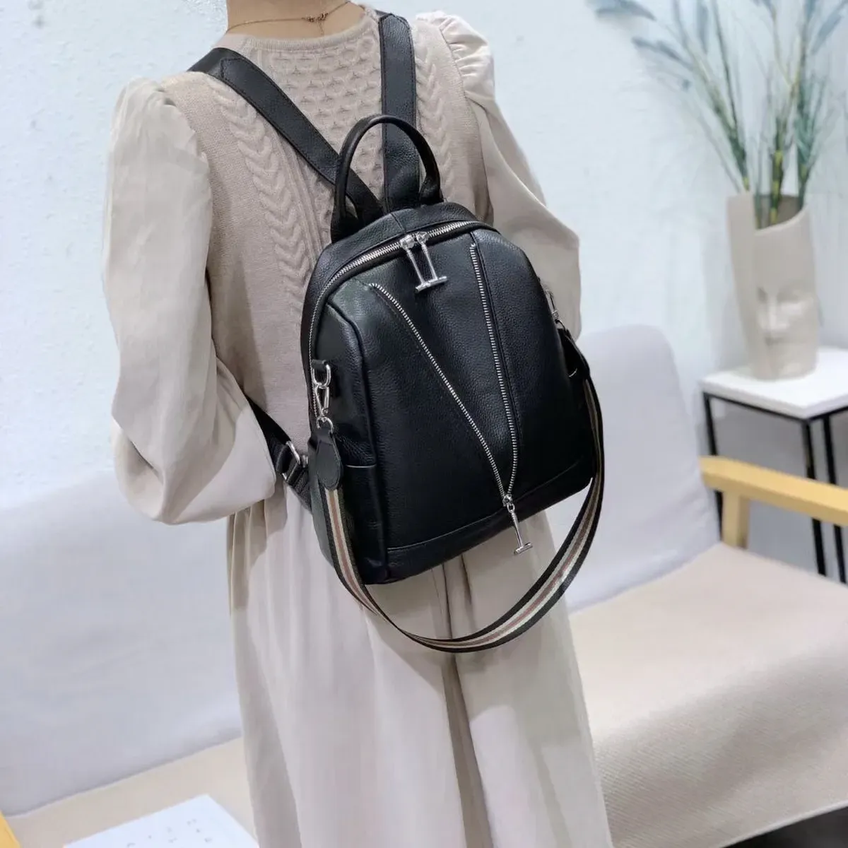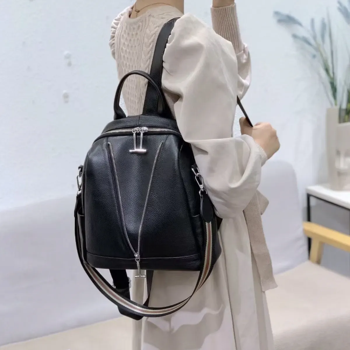 Рюкзак жіночий шкіряний з ременем 22х28х11, наплічна сумочка для дівчини студентки, чорна