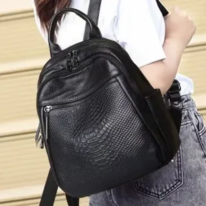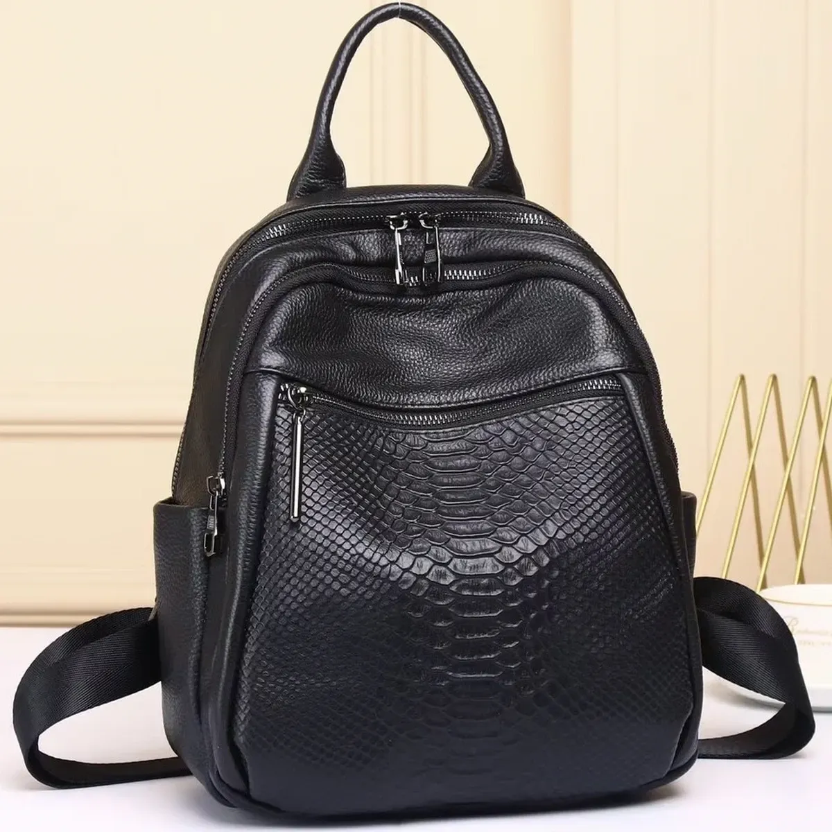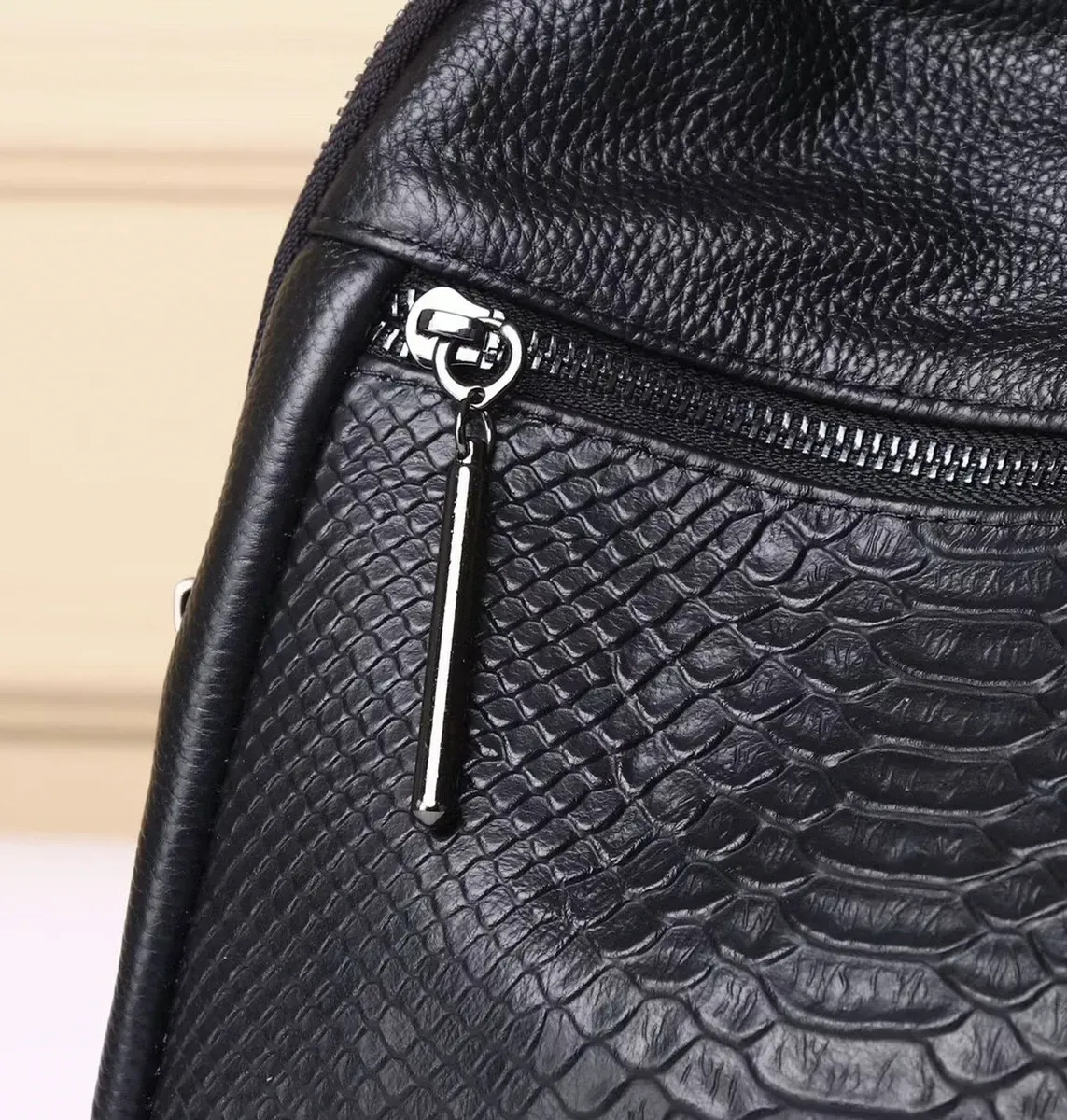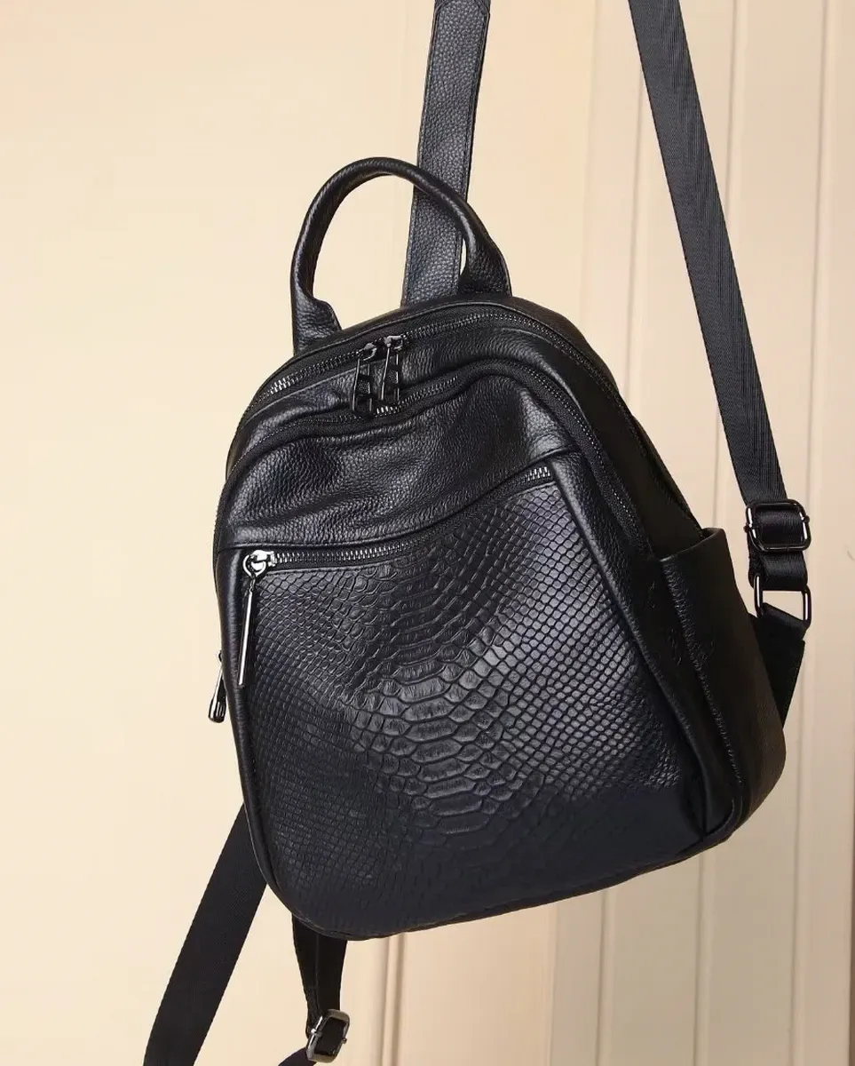 Рюкзак жіночий шкіряний з тисненням під рептилію 23х30х13, сумка наплічна для міста, чорна