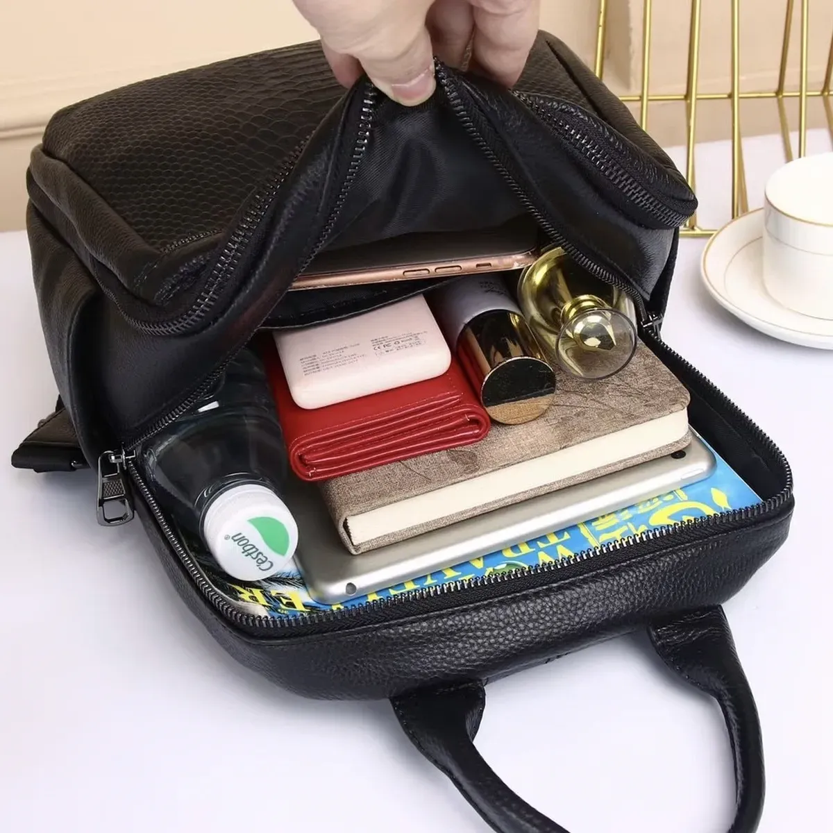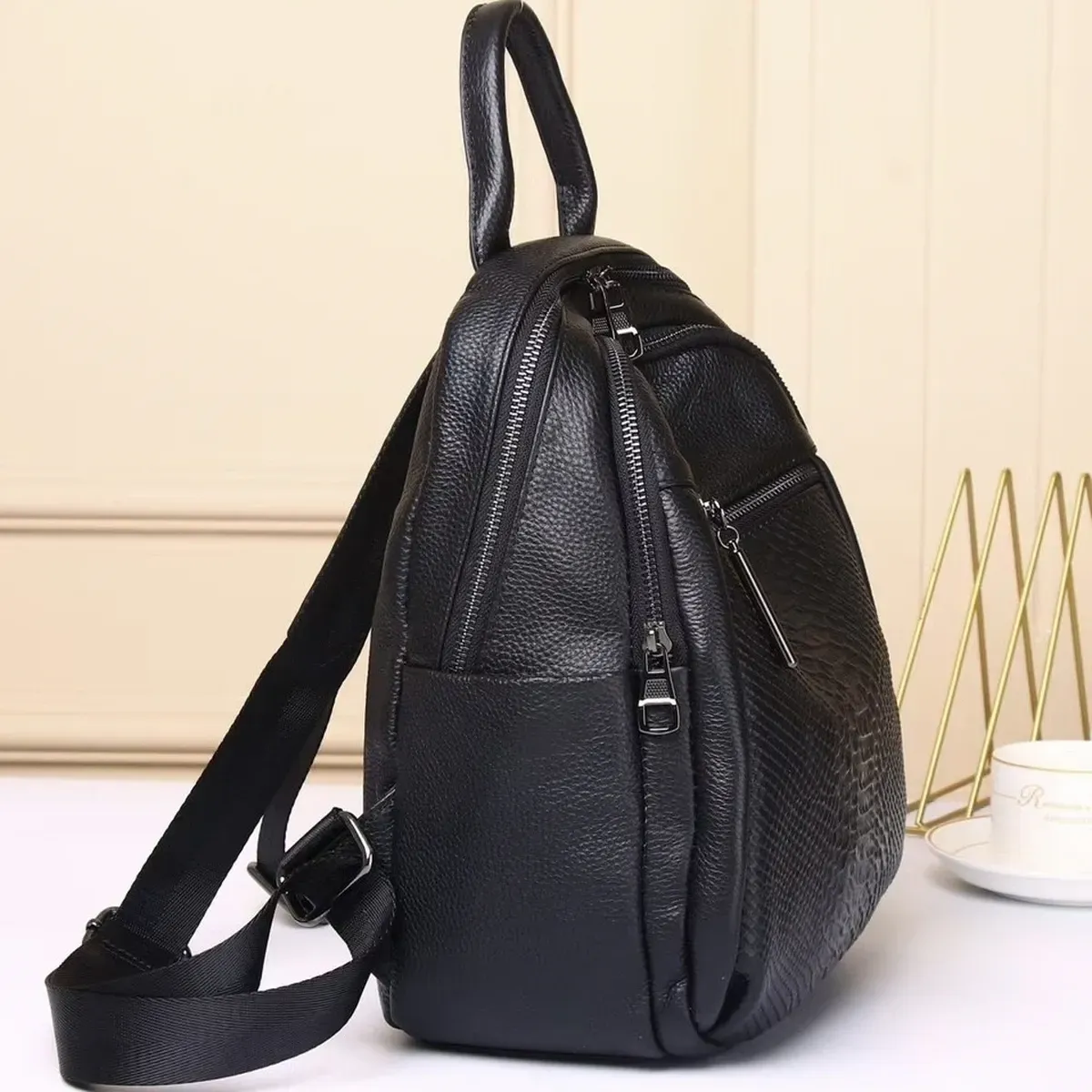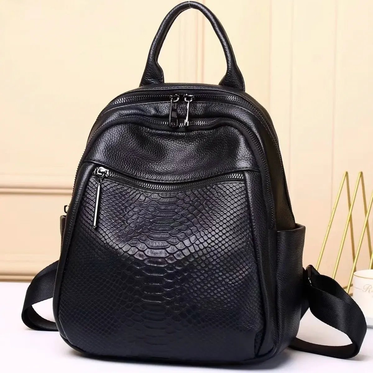 Рюкзак жіночий шкіряний з тисненням під рептилію 23х30х13, сумка наплічна для міста, чорна