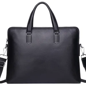 Шкіряна чоловіча ділова сумка-портфель портфель для ноутбука 37х28.5х7, дипломат для офіса Tiding Bag 64028 чорний