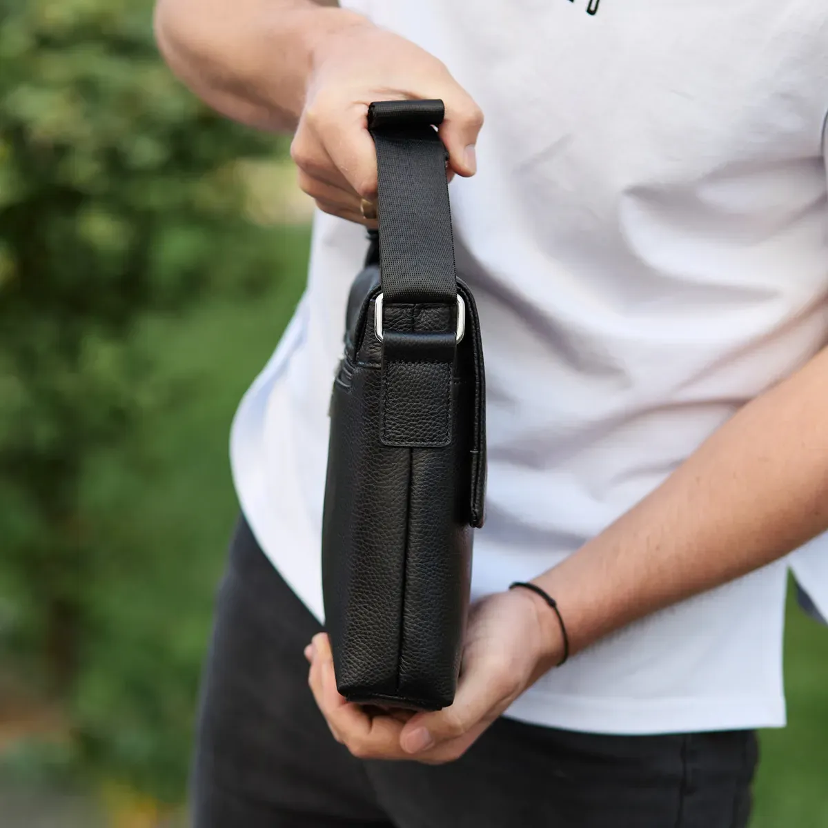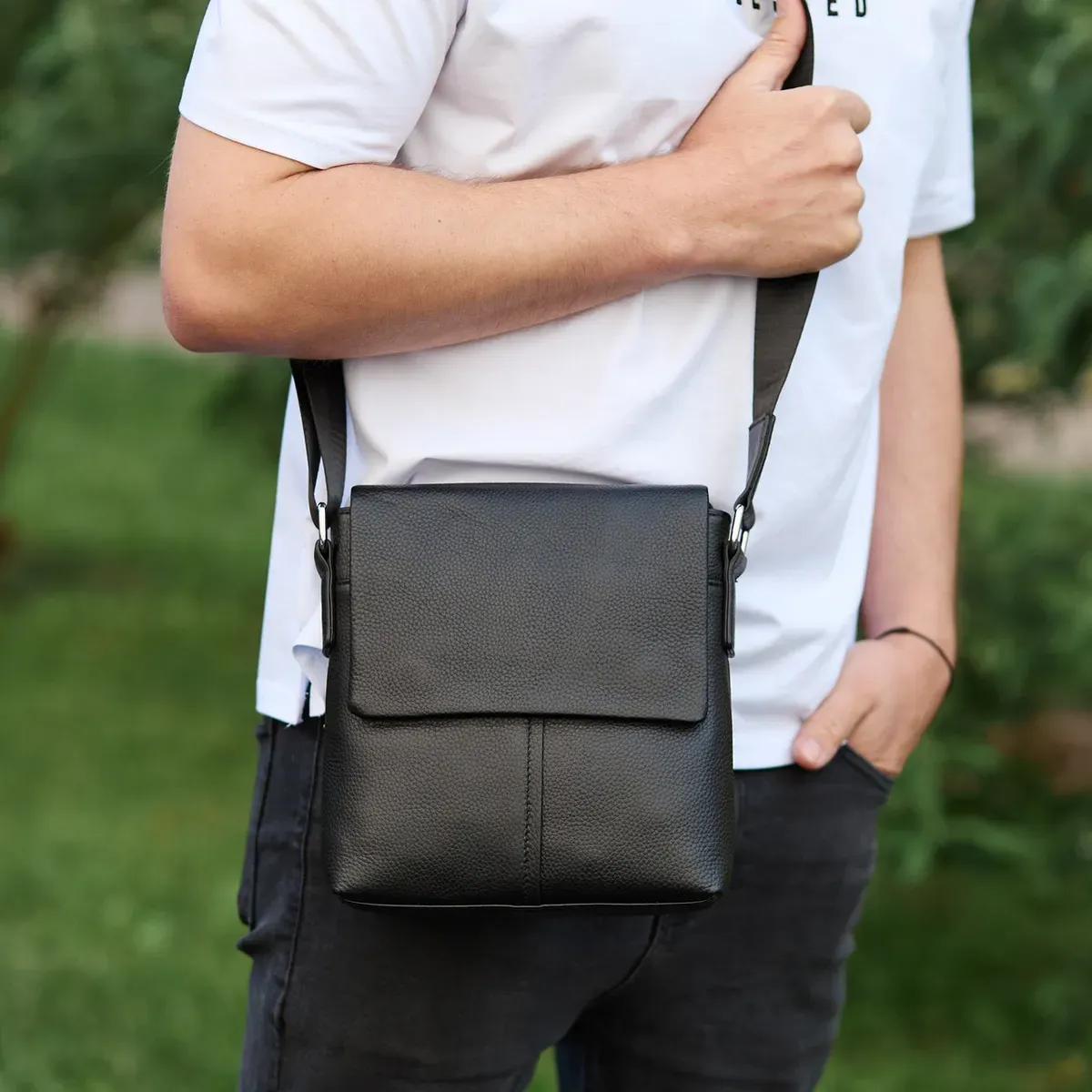 Шкіряна чоловіча сумка-месенджер через плече чорна Tiding Bag 48450