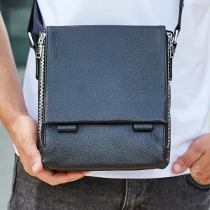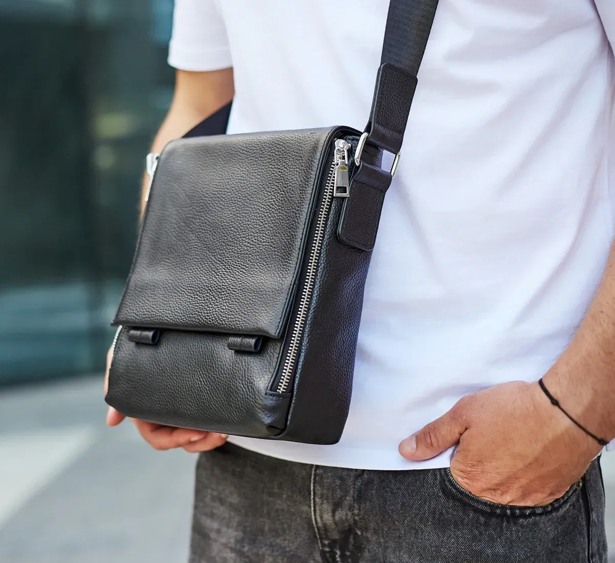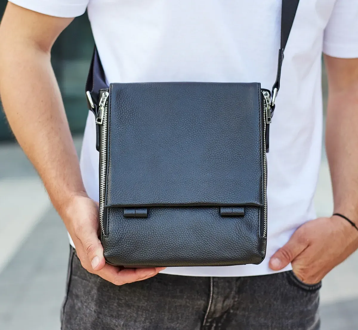 Шкіряна чоловіча сумка-месенджер з натуральної шкіри чорна Tiding Bag 6197