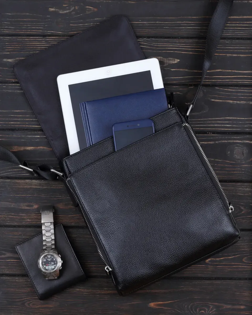 Шкіряна чоловіча сумка-месенджер 21x24x6, барсетка з натуральної шкіри Tiding Bag 9389 чорна