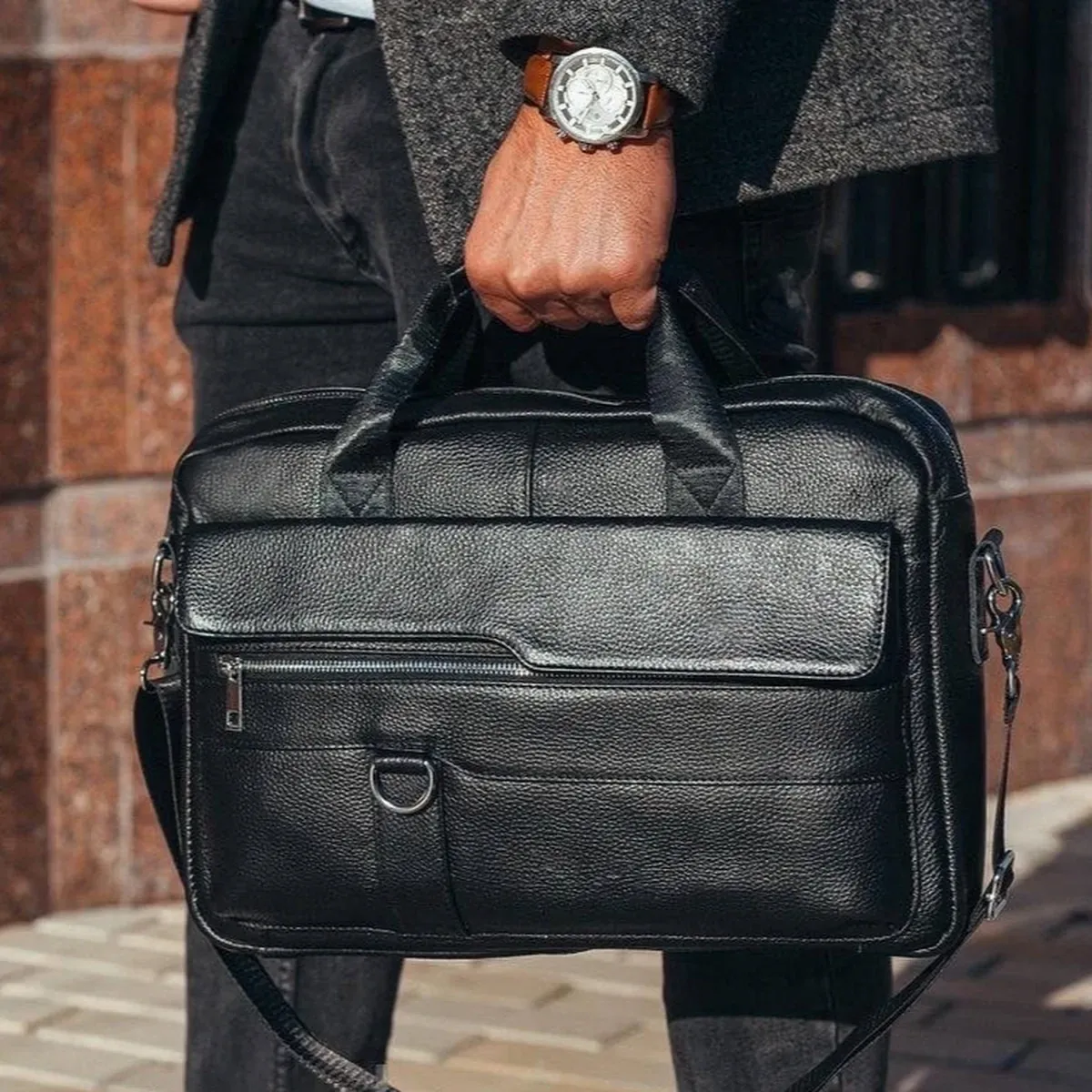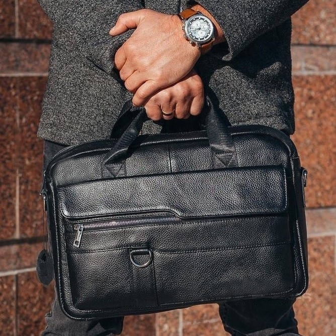 Функціональна офісна сумка пошита з натуральної шкіри. При виготовленні цієї чоловічої сумки була використана якісна фурнітура. Ця офісна сумка має досить багато кишень, які роблять її досить функціональним і практичним. В основному відділенні сумки розташовані внутрішні кишені, в тому числі спеціальний карман для гаджетів з діагоналлю до 16 дюймів. Так само, офісна сумка ще оснащена знімним регульованим ременем через плече.