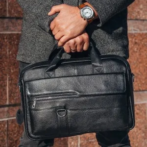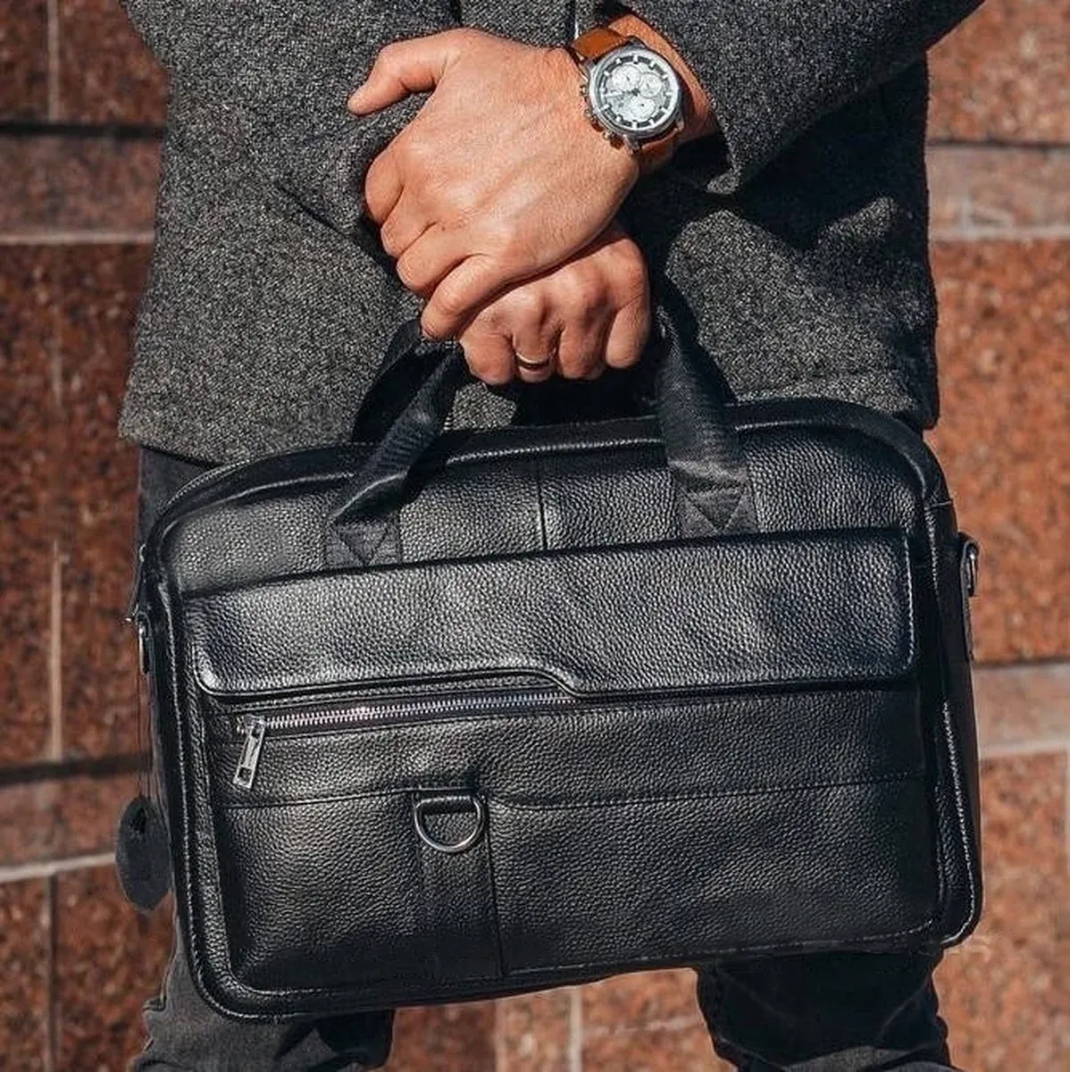 Шкіряна чоловіча сумка-портфель для документів та ноутбука чорна MK39848