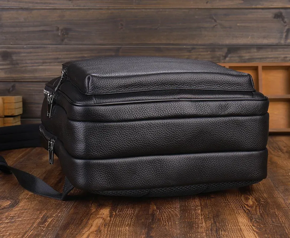 Виготовлений з натуральної зернистої шкіри, він має солідний зовнішній вигляд, приємну фактуру та стійкість до зношування. Рюкзак зберігає презентабельність роками та підходить як для роботи, так і для подорожей та повсякденного міського ритму.
