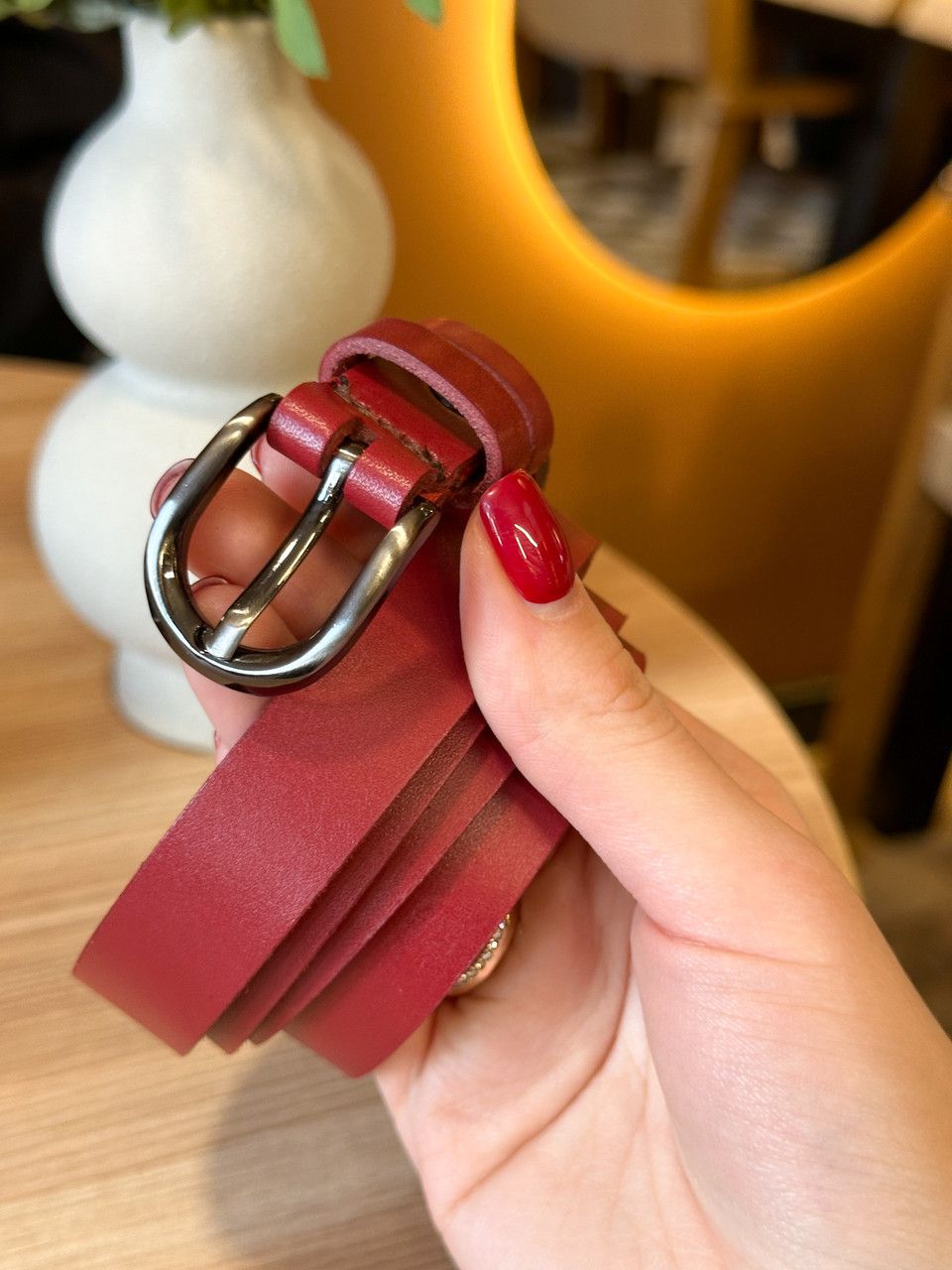 Шкіряний жіночий ремінь червоного кольору 4711