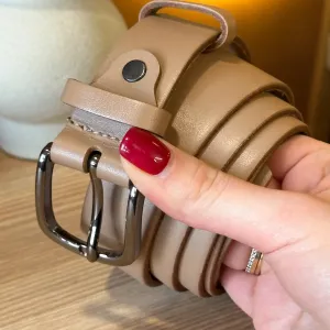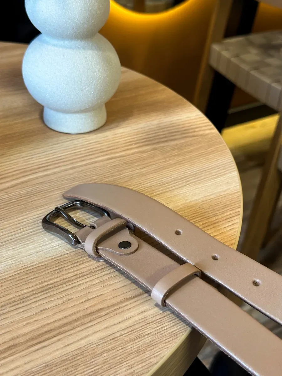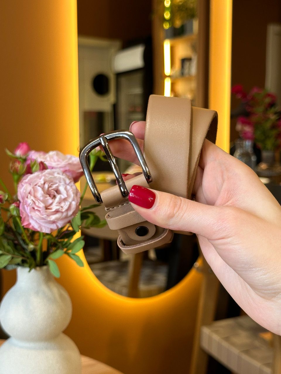 Шкіряний жіночий ремінь в бежевому кольорі 3588